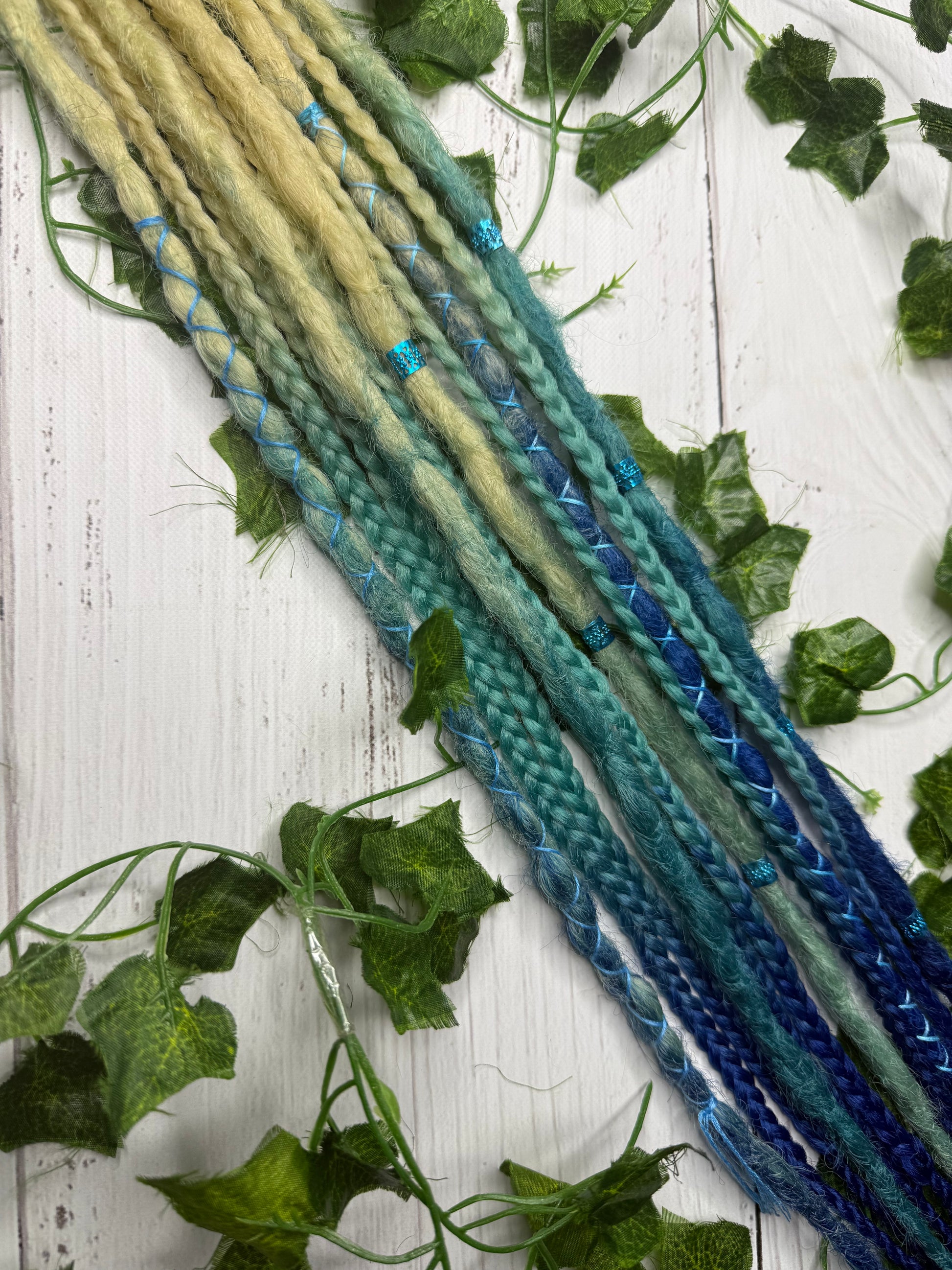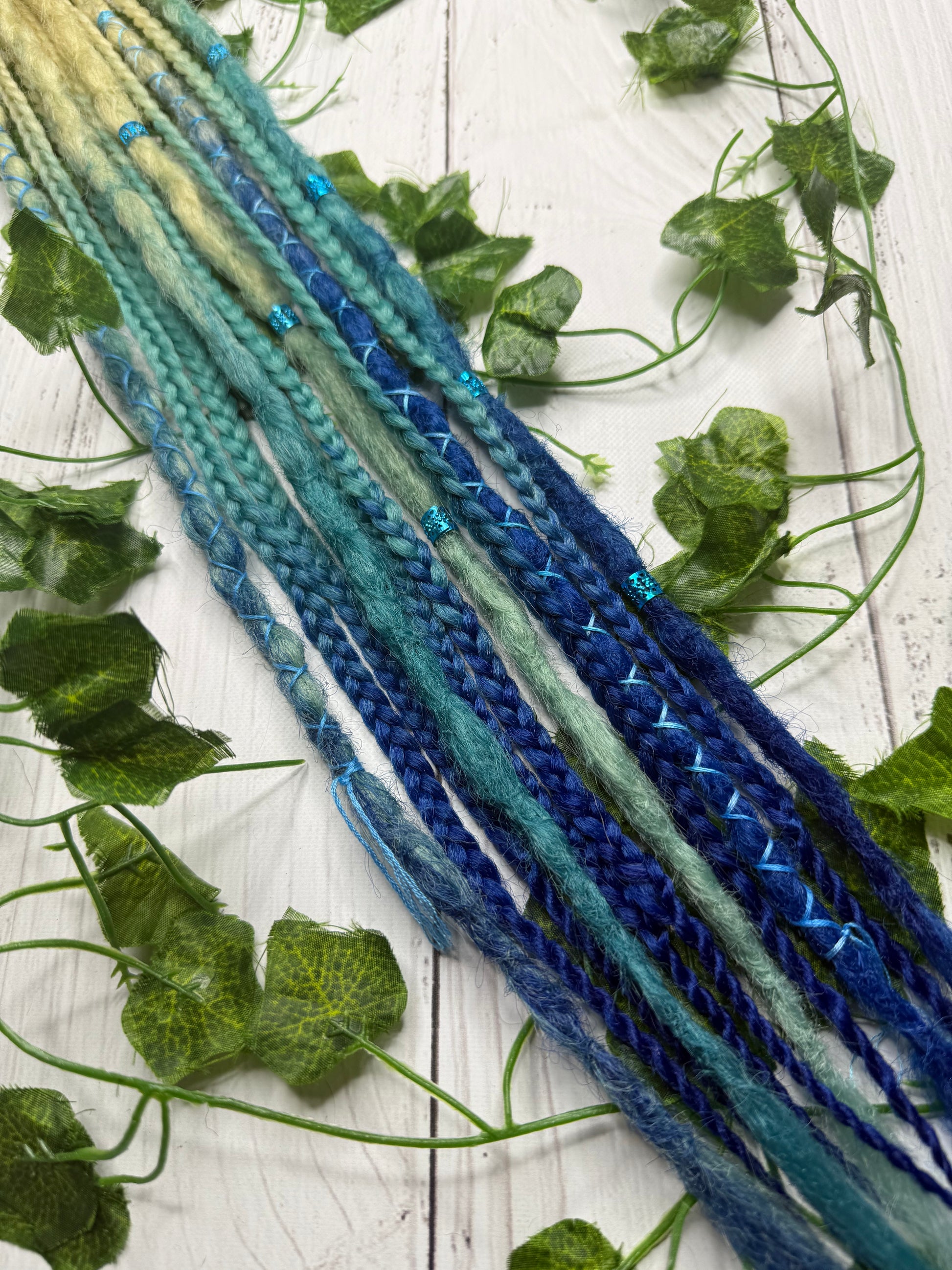 Decorations extensions can be added to dreadlocks or loose hair for added colour, length or volume. They're a fantastic way to satisfy the urge to dye or change your hair/dreadlocks. The decorations are not added permanently but you can wear them for as long as you choose. They're very easy to self-install and since they're reusable you can wear them time and time again whenever you like! Owning multiple colour combinations is the best way to satisfy that urge for change without changing your dreadlock set long-term.