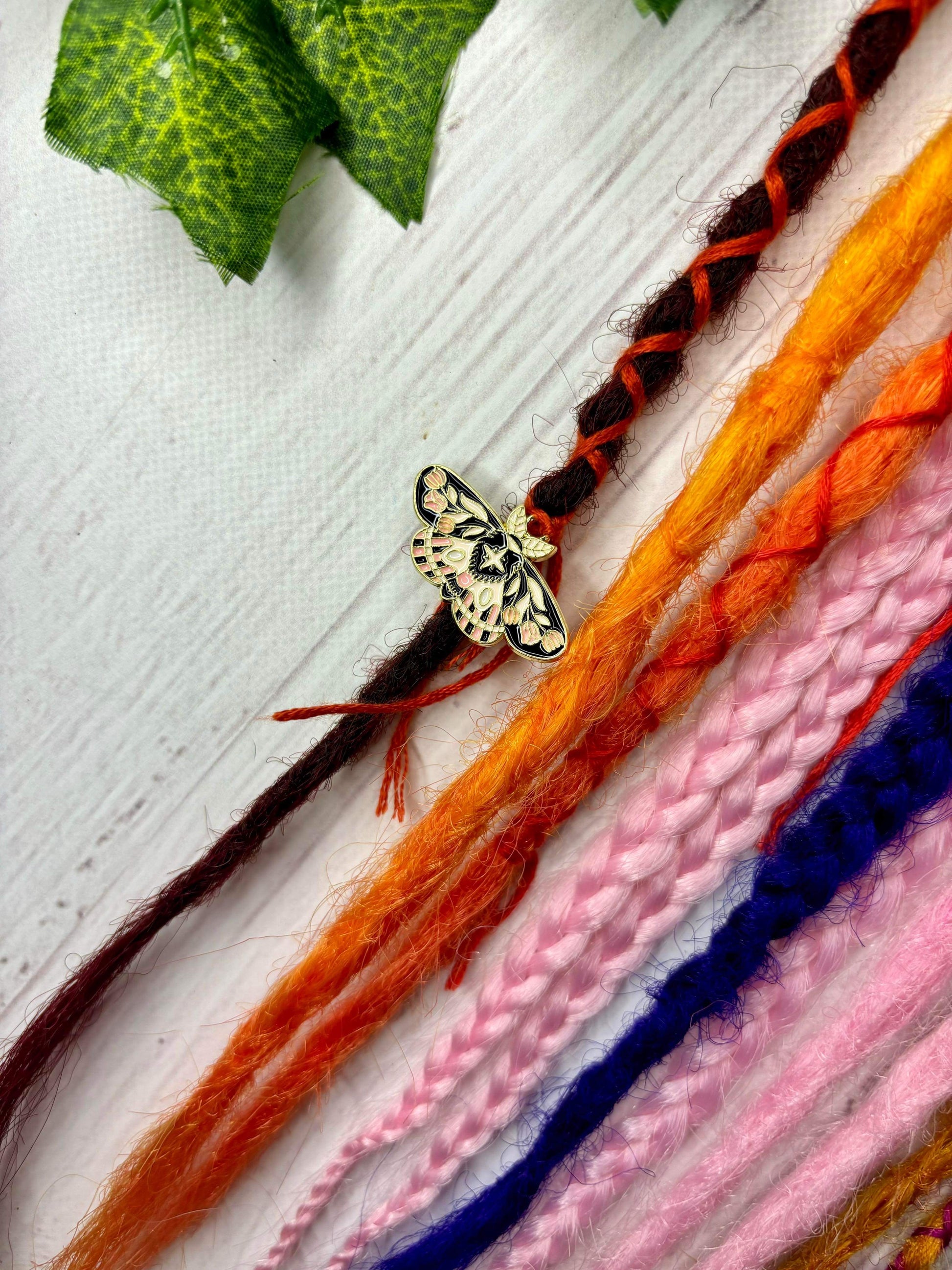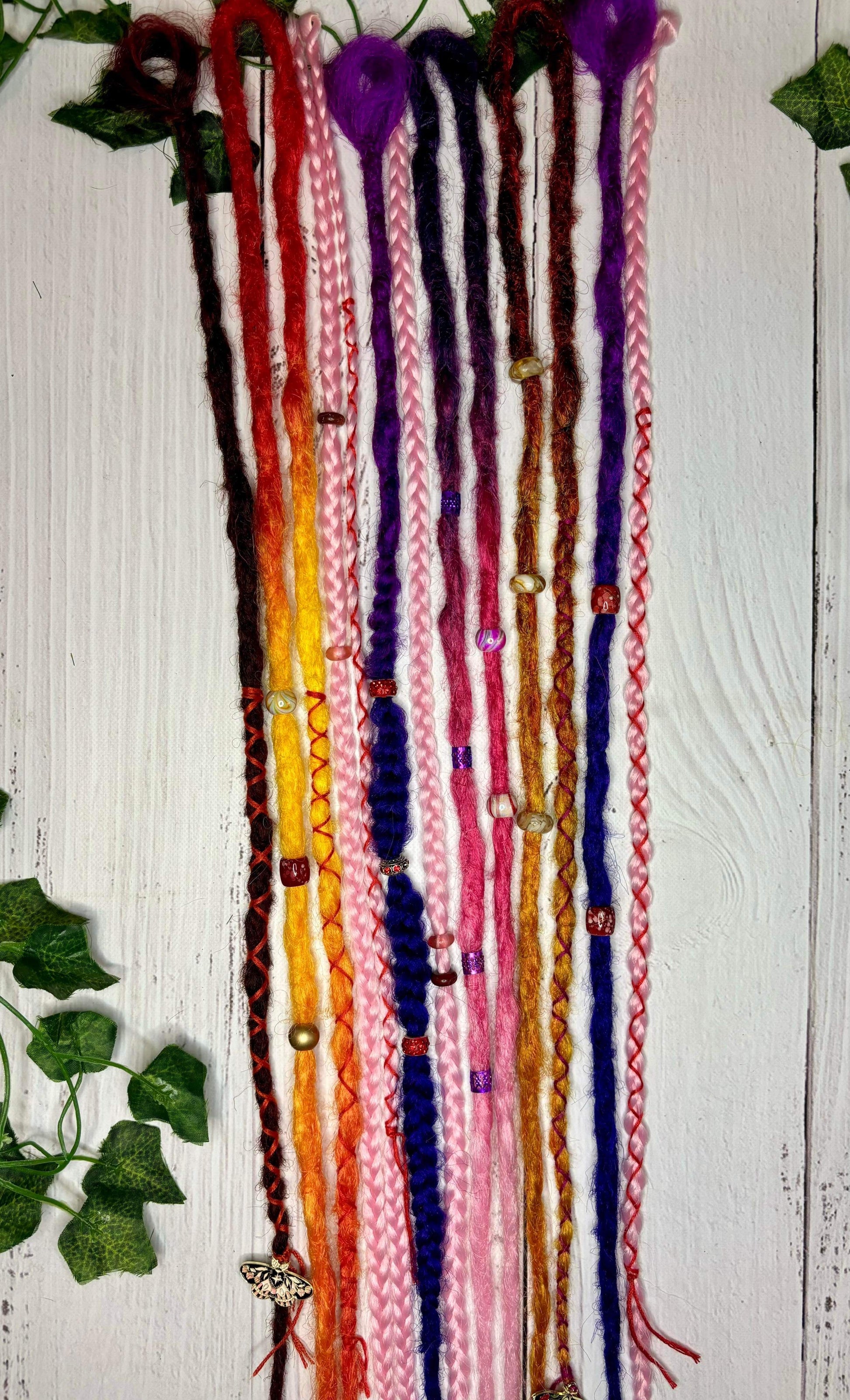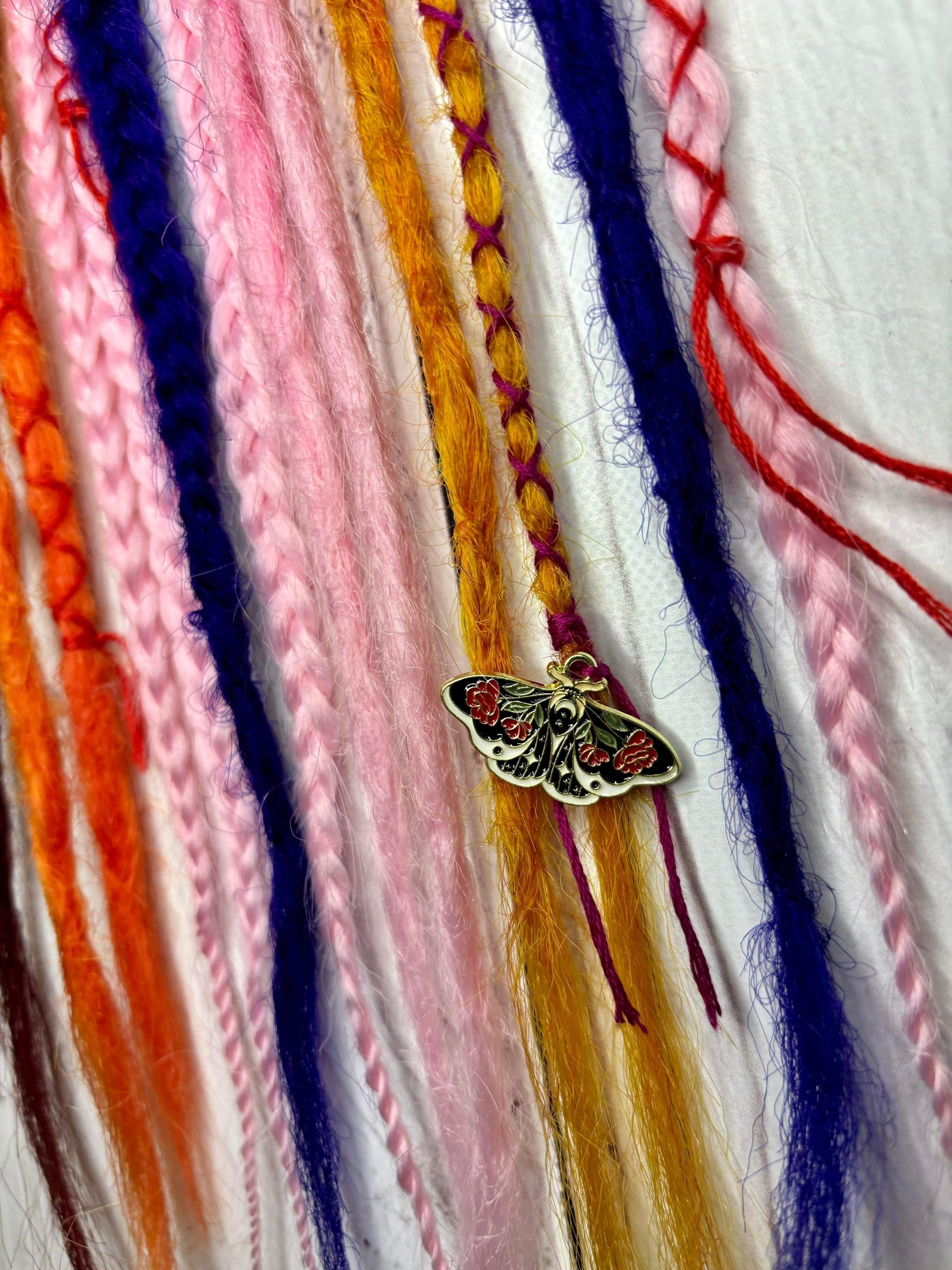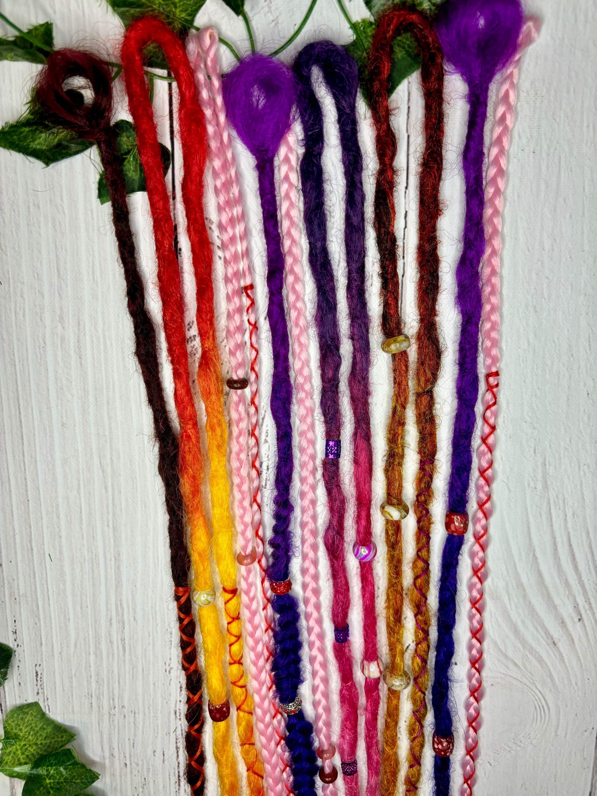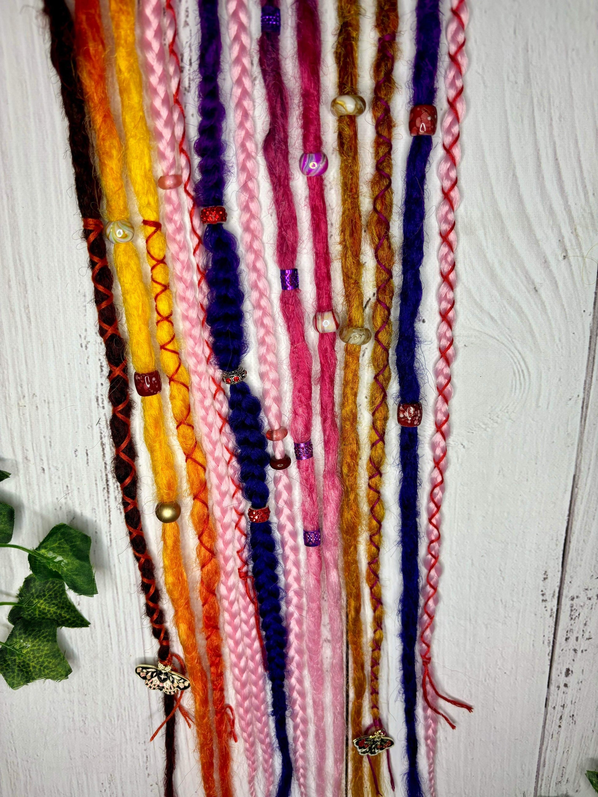 Decorations extensions can be added to dreadlocks or loose hair for added colour, length or volume. They're a fantastic way to satisfy the urge to dye or change your hair/dreadlocks. The decorations are not added permanently but you can wear them for as long as you choose. They're very easy to self-install and since they're reusable you can wear them time and time again whenever you like! Owning multiple colour combinations is the best way to satisfy that urge for change without changing your dreadlock set long-term.