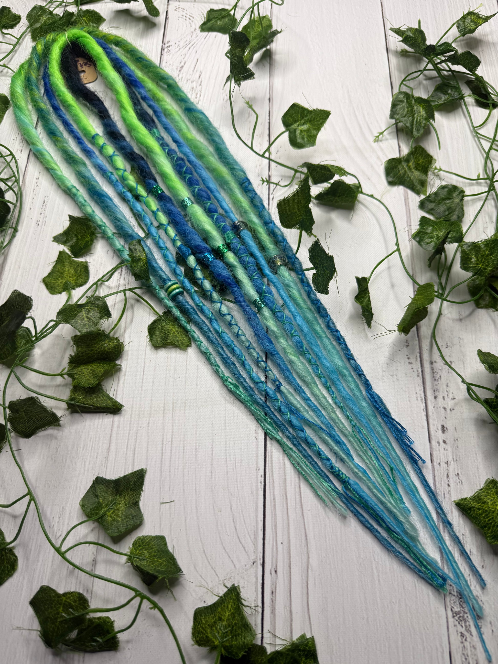 Add these green and blue colours to your hair/dreadlocks in just a few minutes!