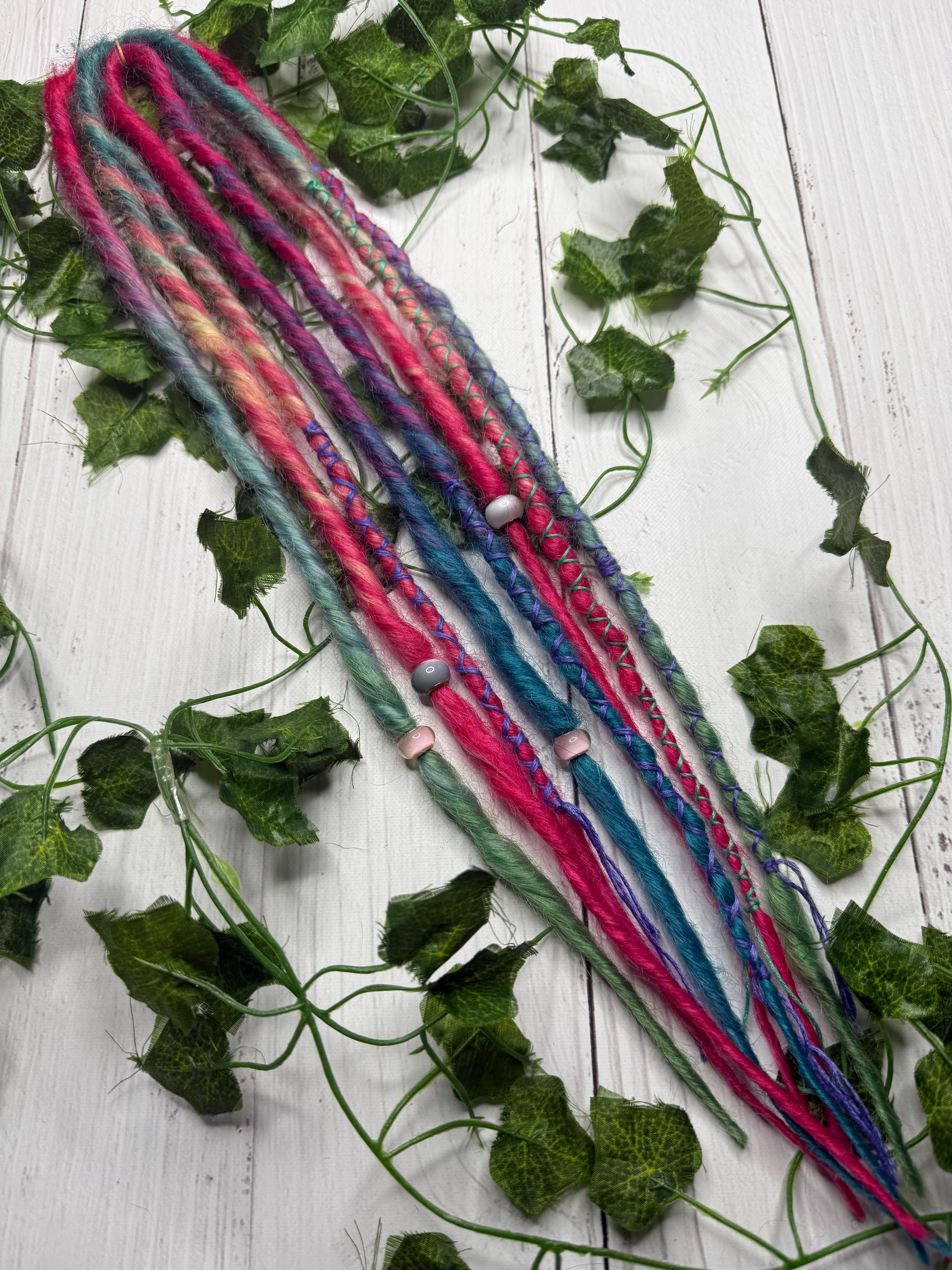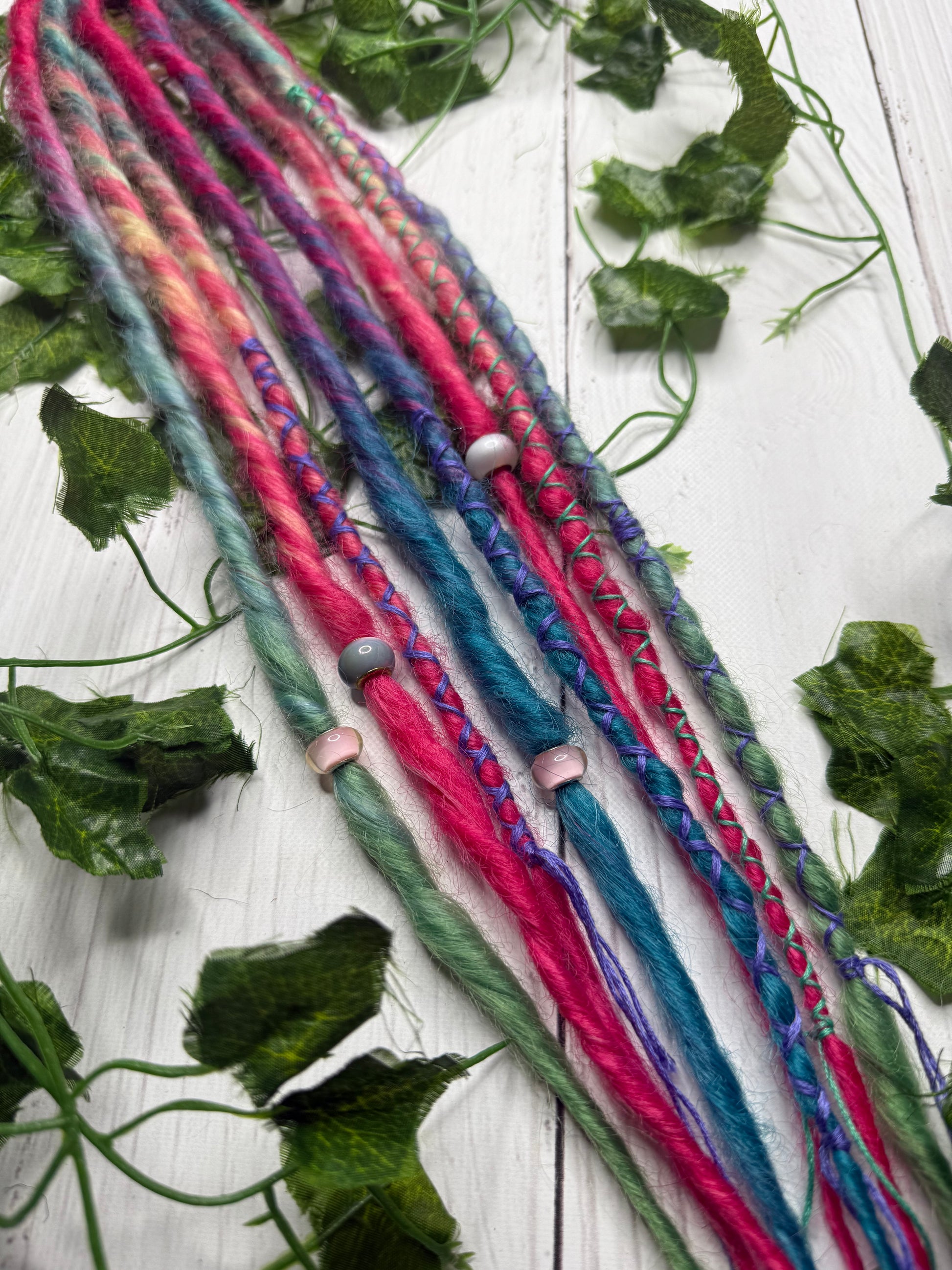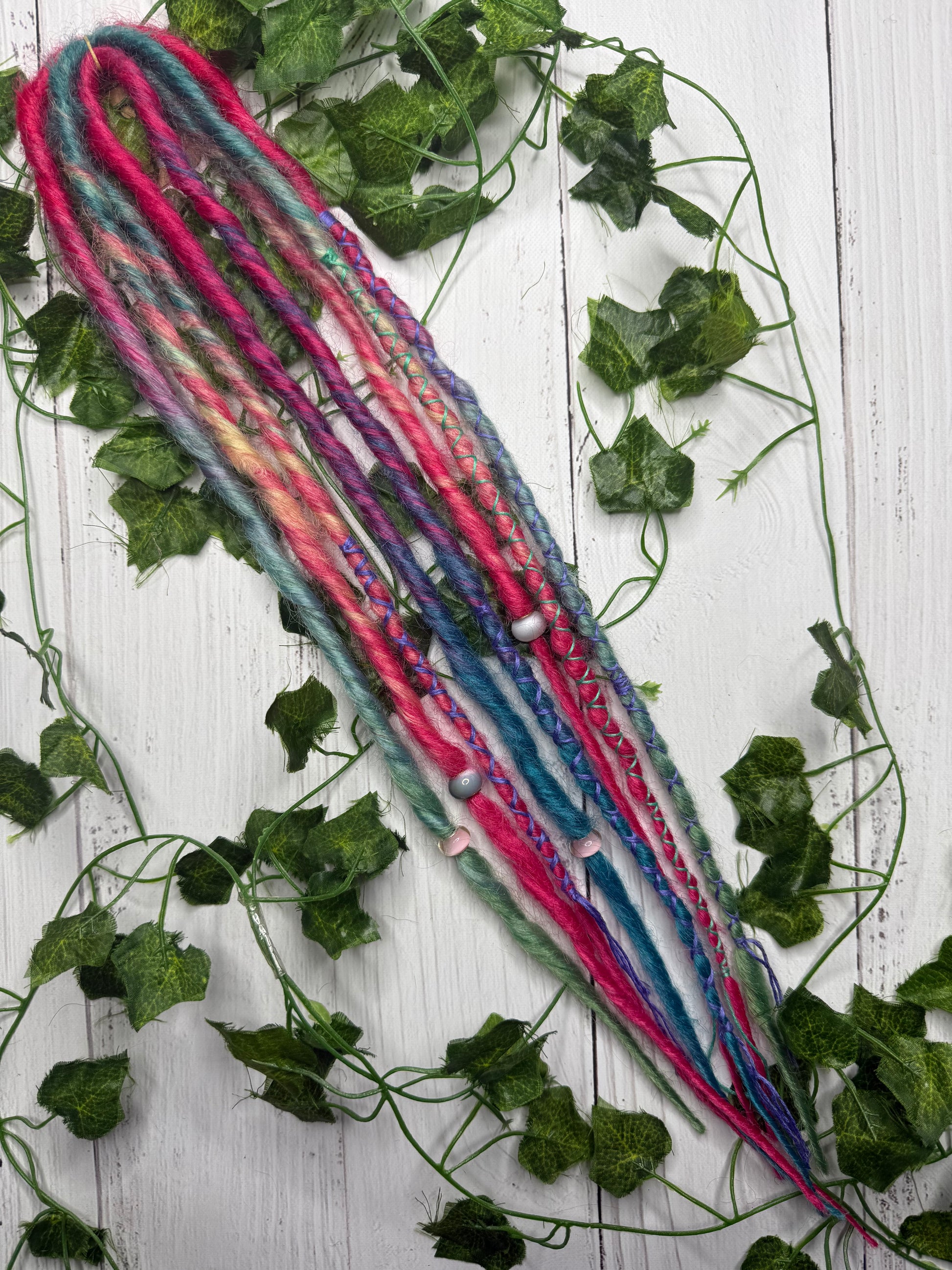 Decorations extensions can be added to dreadlocks or loose hair for added colour, length or volume. They're a fantastic way to satisfy the urge to dye or change your hair/dreadlocks. The decorations are not added permanently but you can wear them for as long as you choose. They're very easy to self-install and since they're reusable you can wear them time and time again whenever you like! Owning multiple colour combinations is the best way to satisfy that urge for change without changing your dreadlock set long-term.