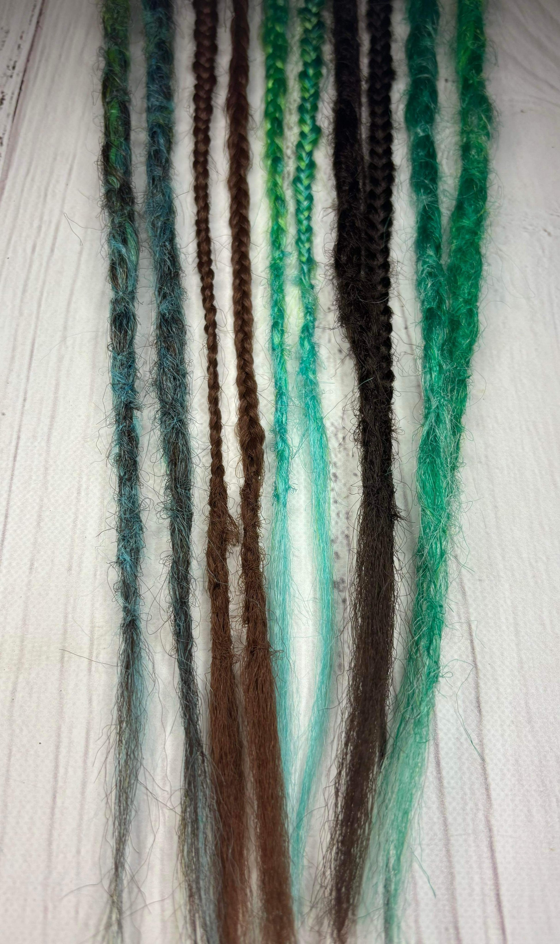 Decorations extensions can be added to dreadlocks or loose hair for added colour, length or volume. They're a fantastic way to satisfy the urge to dye or change your hair/dreadlocks. The decorations are not added permanently but you can wear them for as long as you choose. They're very easy to self-install and since they're reusable you can wear them time and time again whenever you like! Owning multiple colour combinations is the best way to satisfy that urge for change without changing your dreadlock set long-term.