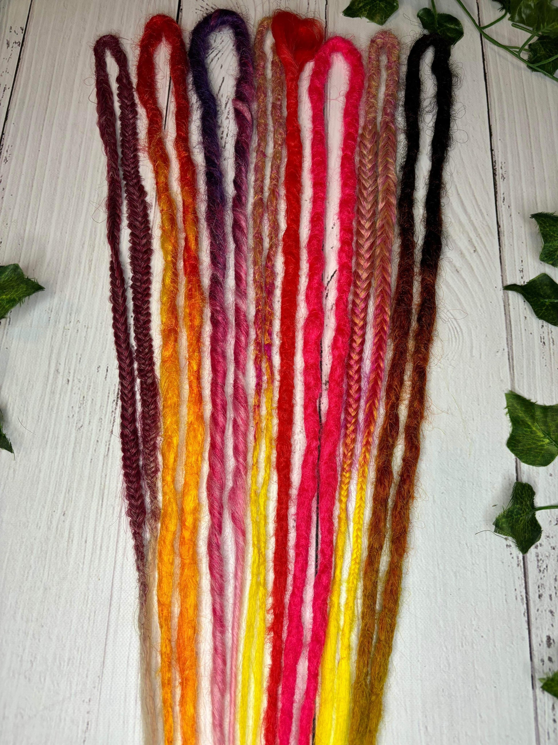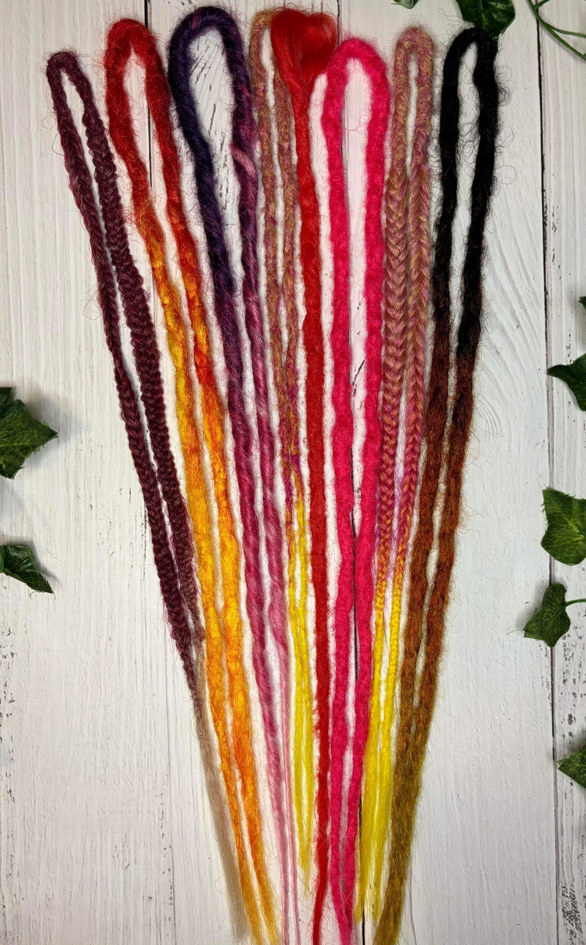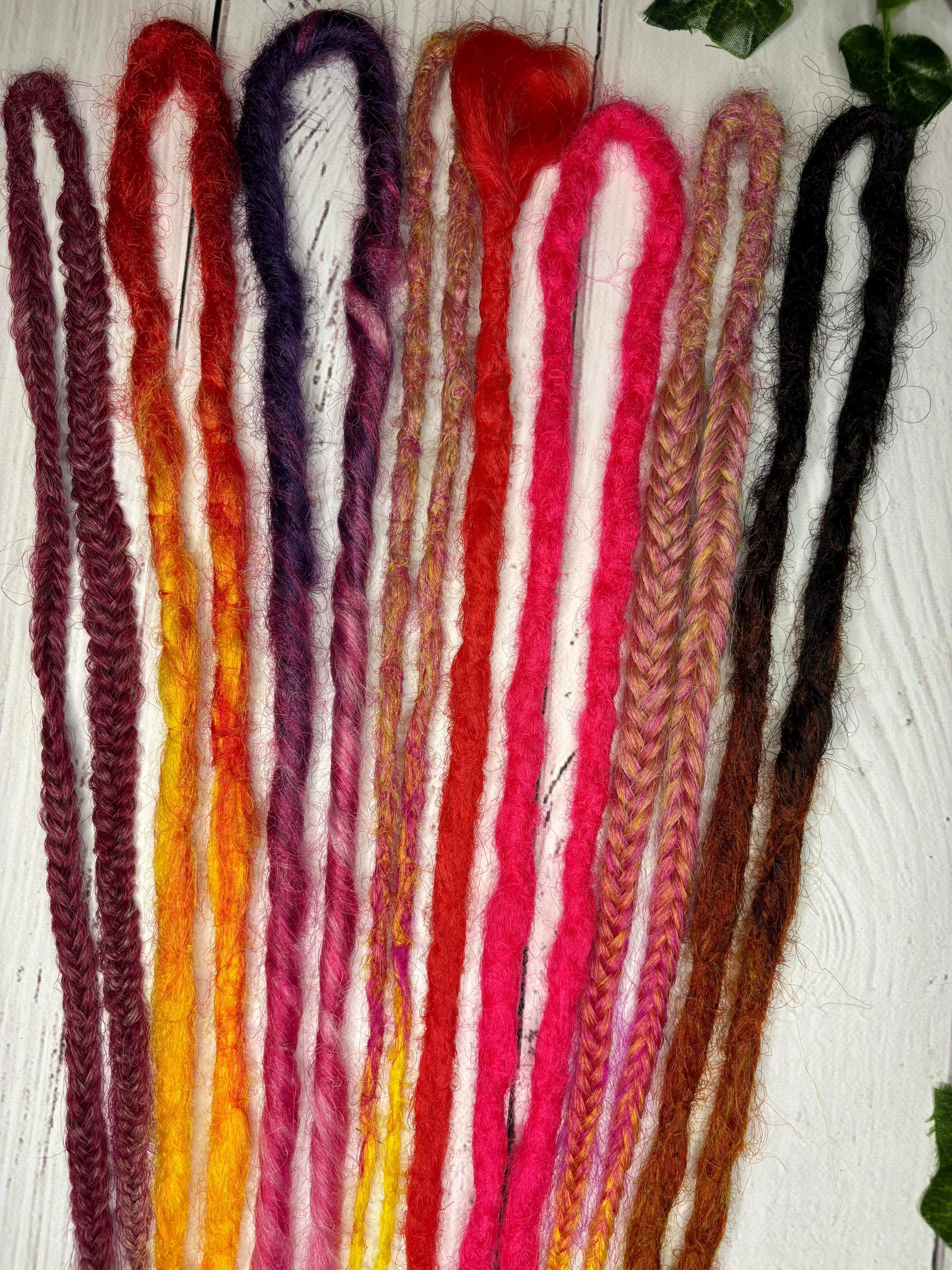 Decorations extensions can be added to dreadlocks or loose hair for added colour, length or volume. They're a fantastic way to satisfy the urge to dye or change your hair/dreadlocks. The decorations are not added permanently but you can wear them for as long as you choose. They're very easy to self-install and since they're reusable you can wear them time and time again whenever you like! Owning multiple colour combinations is the best way to satisfy that urge for change without changing your dreadlock set long-term.
