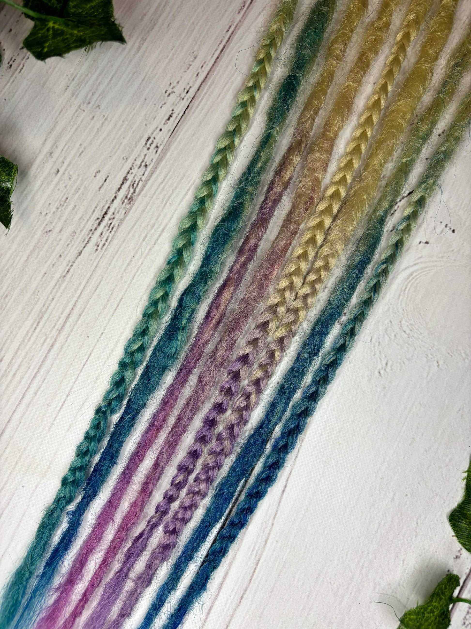 Set of 4, 43-47cm Blonde Blue Pink and Purple Synthetic Extensions