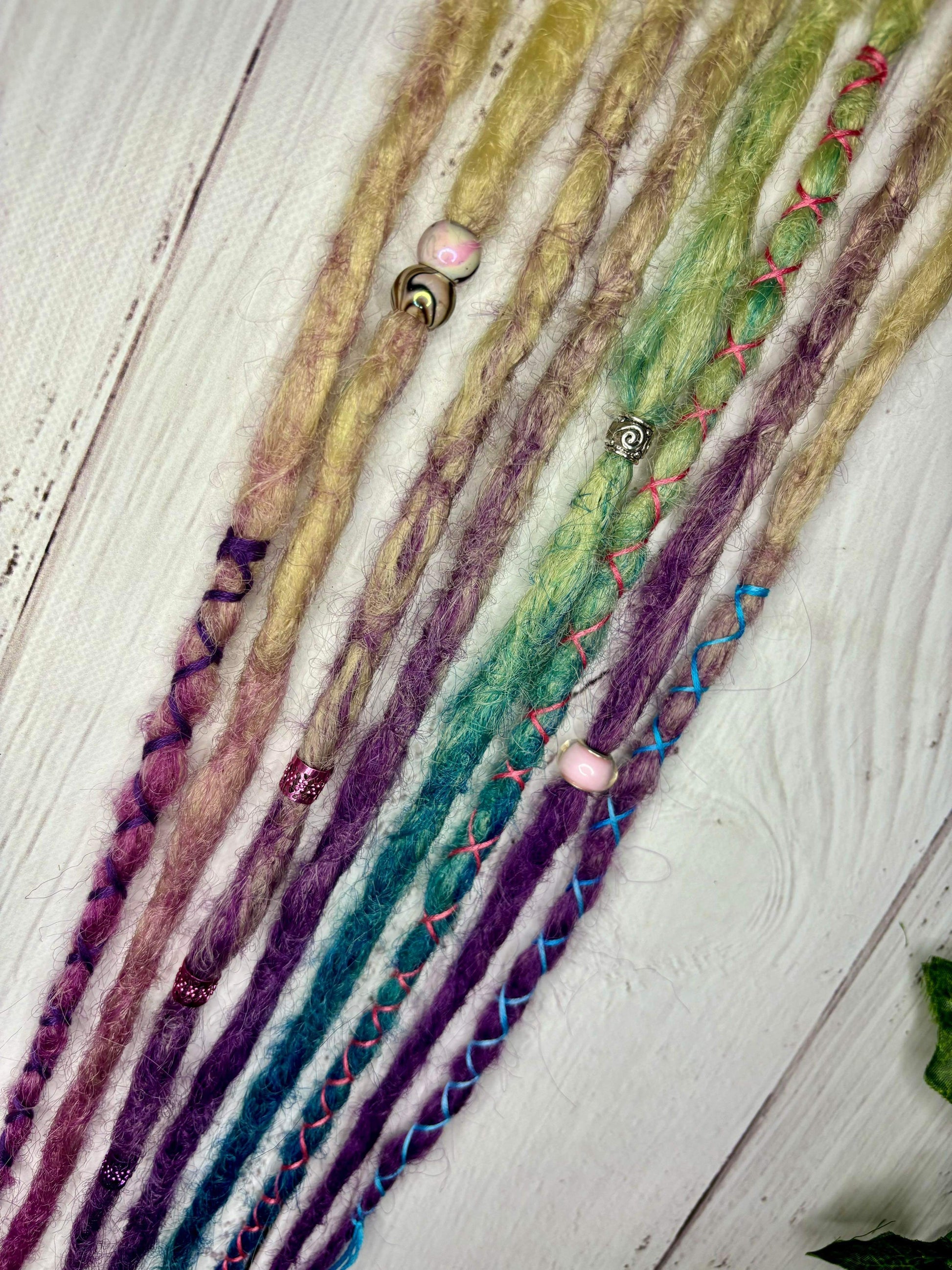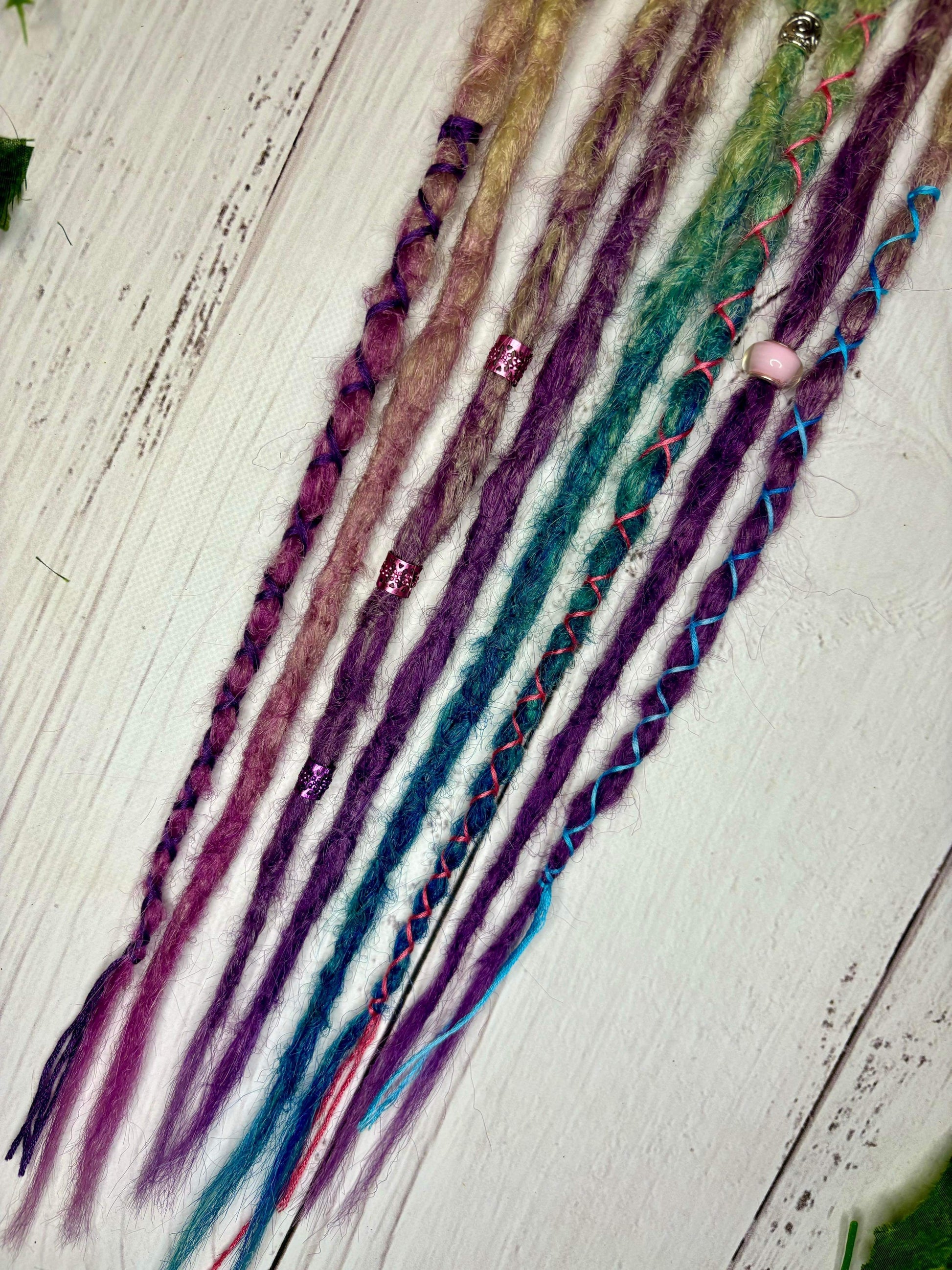 Decorations extensions can be added to dreadlocks or loose hair for added colour, length or volume. They're a fantastic way to satisfy the urge to dye or change your hair/dreadlocks. The decorations are not added permanently but you can wear them for as long as you choose. They're very easy to self-install and since they're reusable you can wear them time and time again whenever you like! Owning multiple colour combinations is the best way to satisfy that urge for change without changing your dreadlock set long-term.