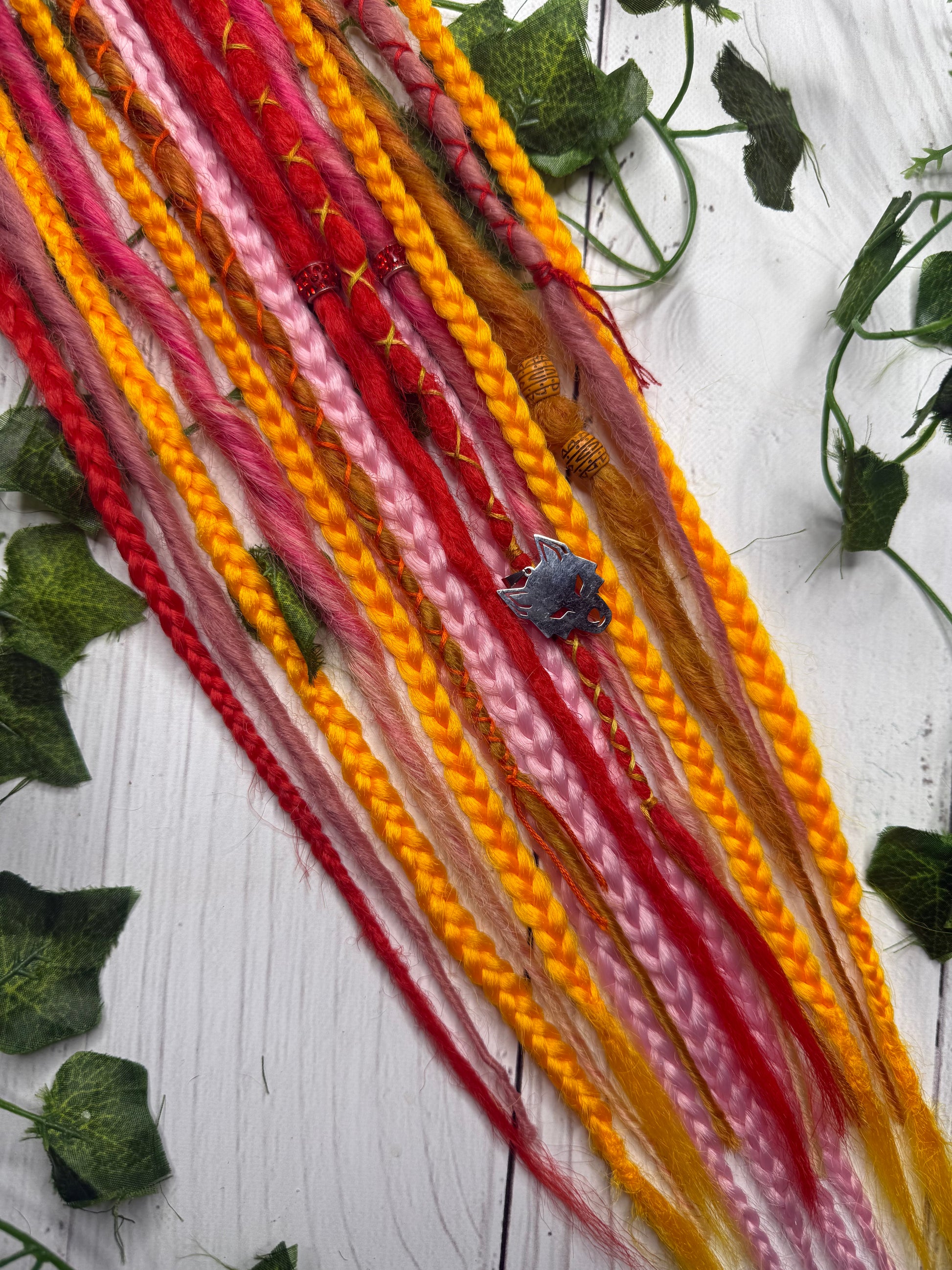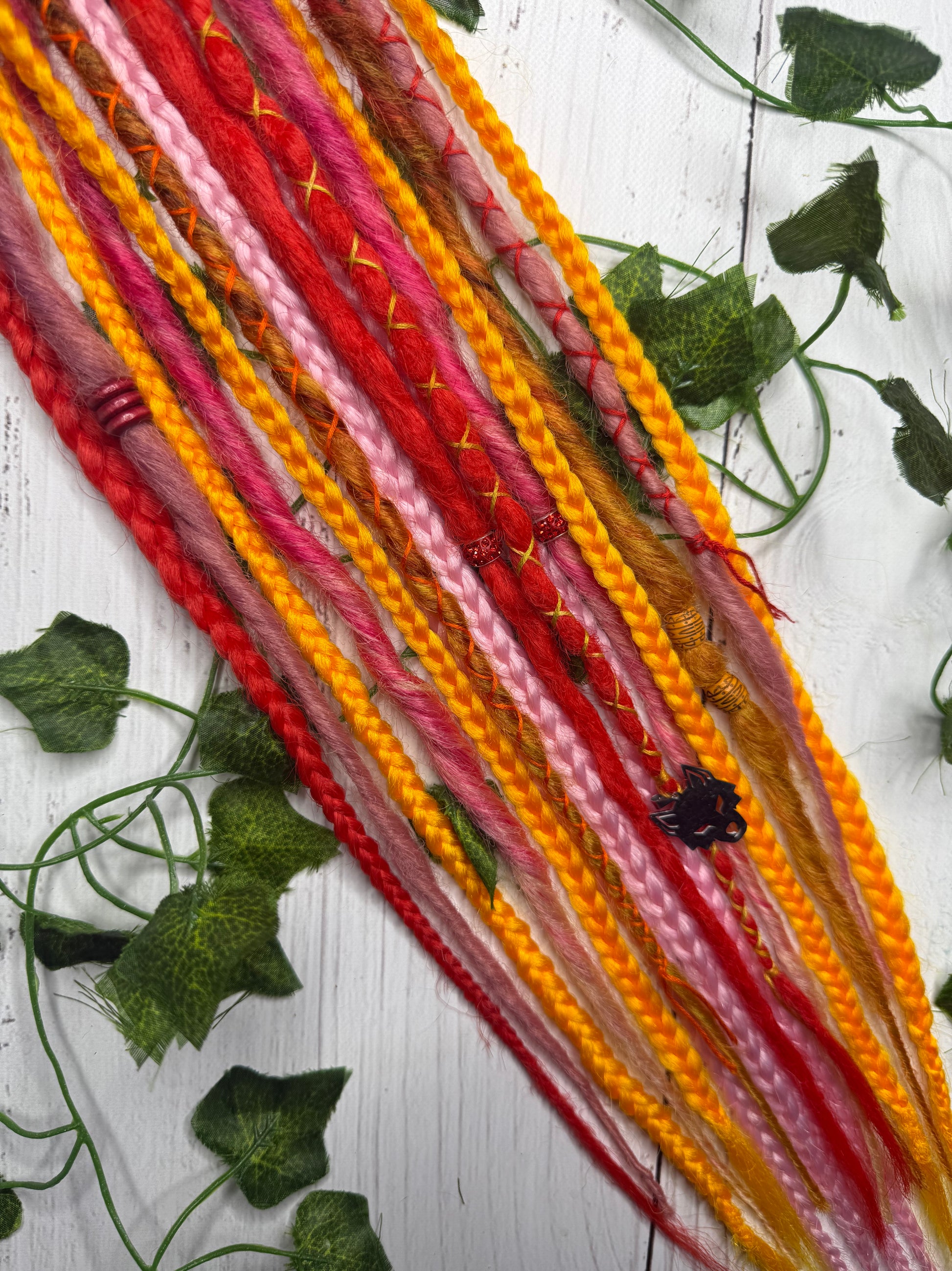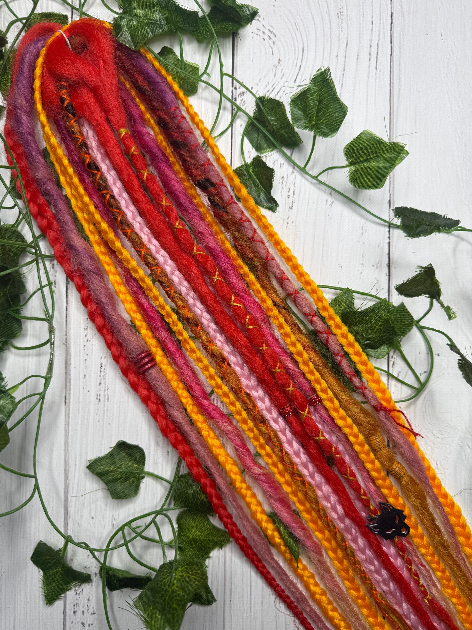 Decorations extensions can be added to dreadlocks or loose hair for added colour, length or volume. They're a fantastic way to satisfy the urge to dye or change your hair/dreadlocks. The decorations are not added permanently but you can wear them for as long as you choose. They're very easy to self-install and since they're reusable you can wear them time and time again whenever you like! Owning multiple colour combinations is the best way to satisfy that urge for change without changing your dreadlock set long-term.