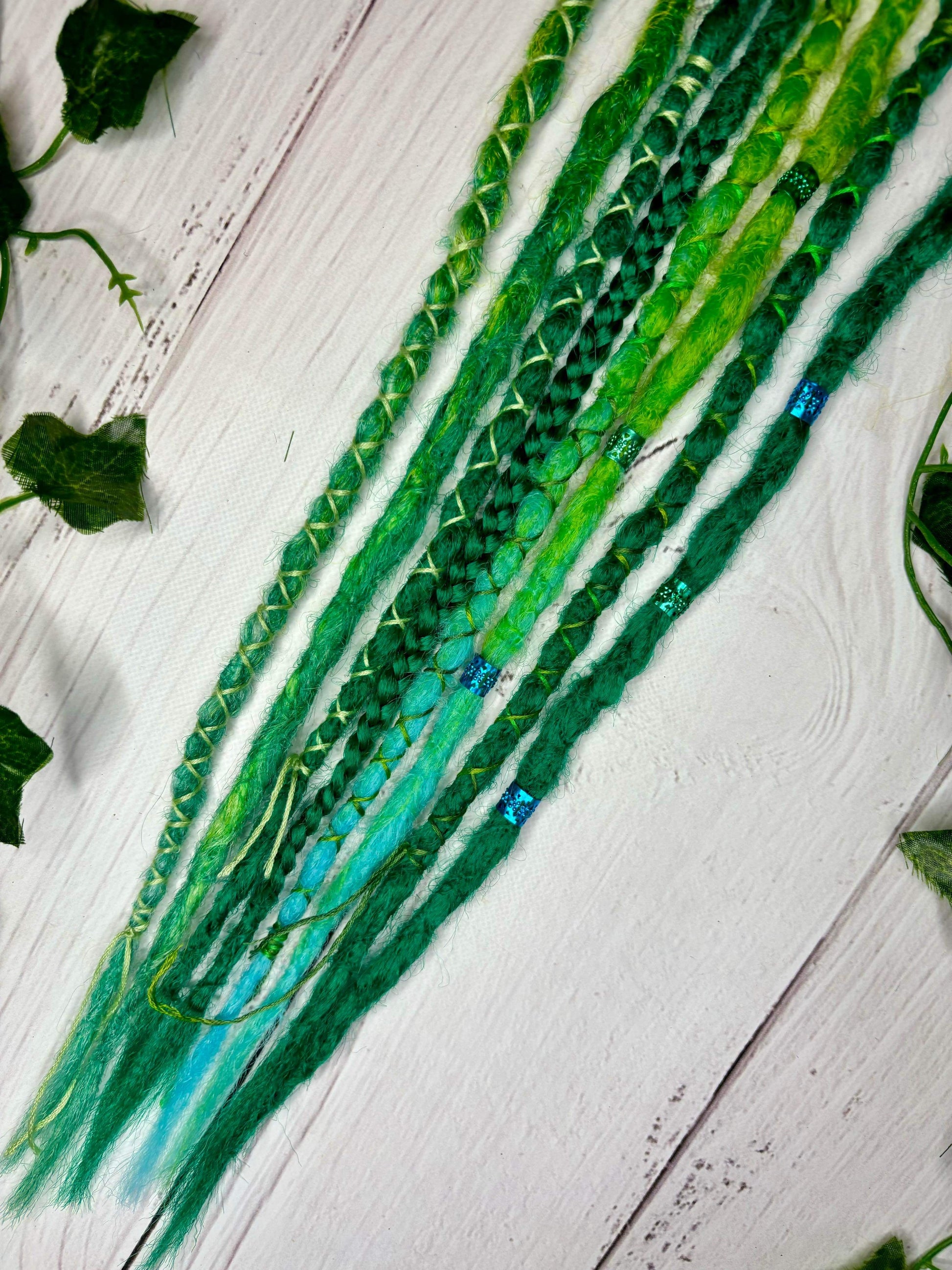 Decorations extensions can be added to dreadlocks or loose hair for added colour, length or volume. They're a fantastic way to satisfy the urge to dye or change your hair/dreadlocks. The decorations are not added permanently but you can wear them for as long as you choose. They're very easy to self-install and since they're reusable you can wear them time and time again whenever you like! Owning multiple colour combinations is the best way to satisfy that urge for change without changing your dreadlock set long-term.