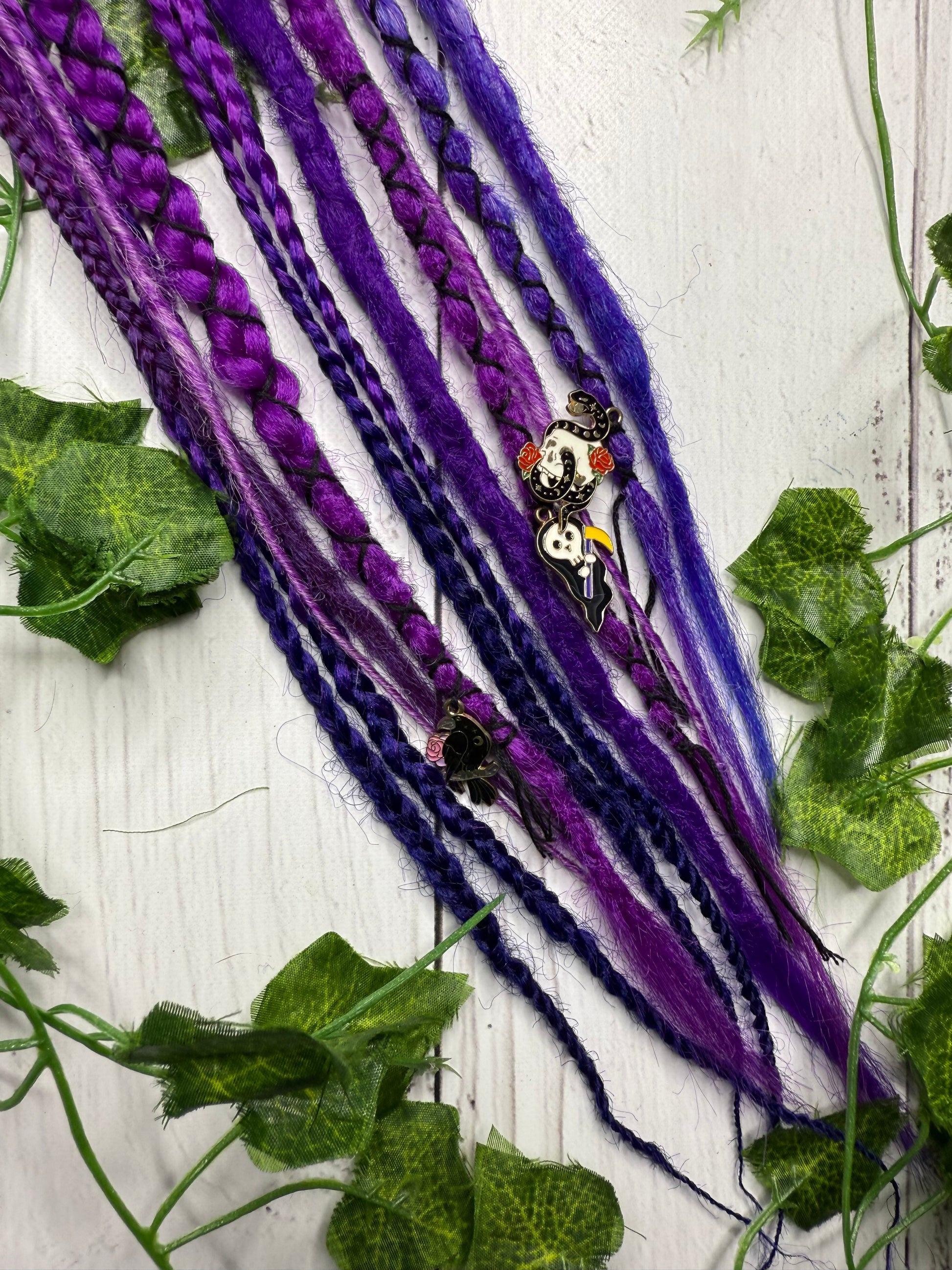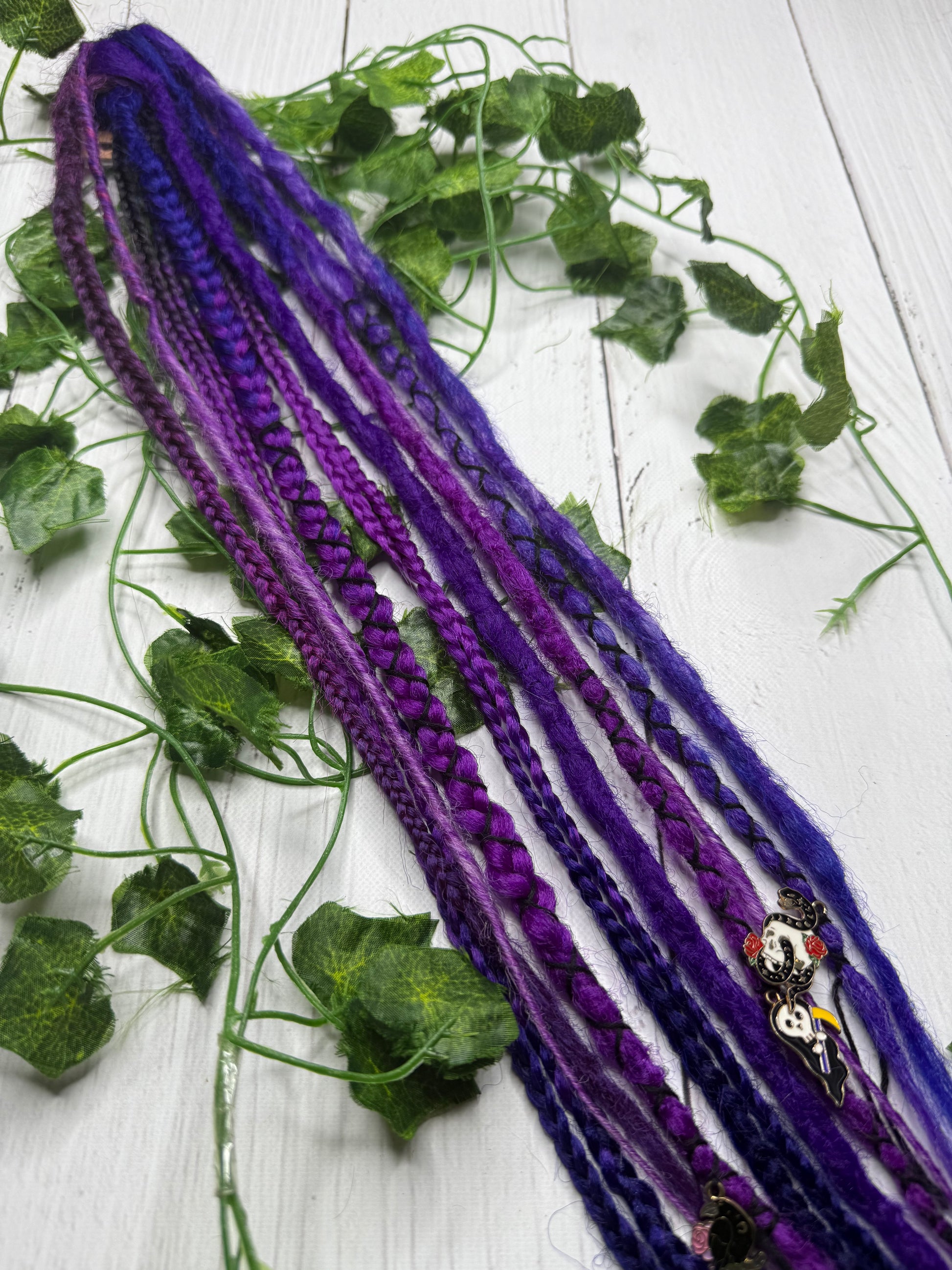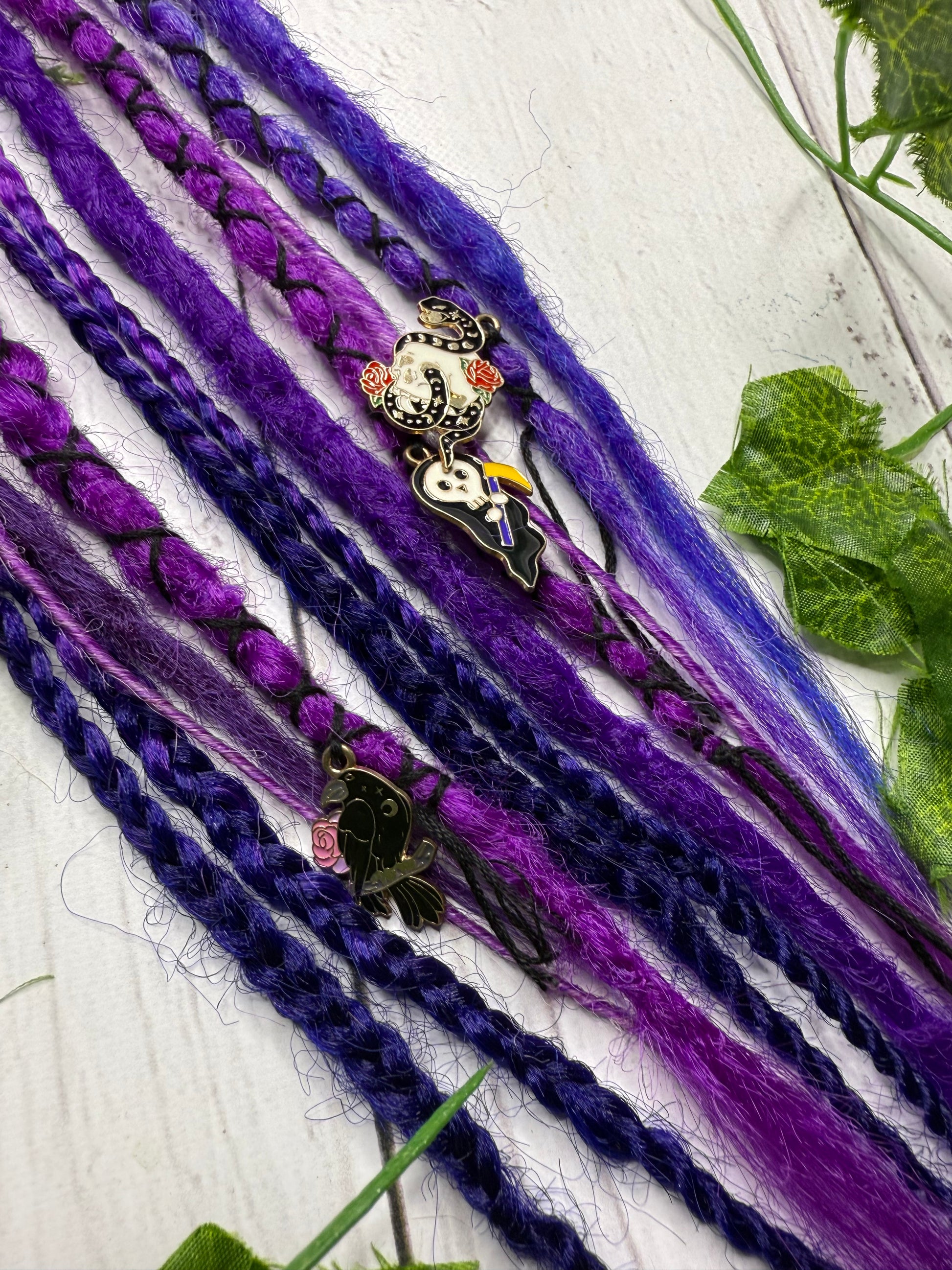 Decorations extensions can be added to dreadlocks or loose hair for added colour, length or volume. They're a fantastic way to satisfy the urge to dye or change your hair/dreadlocks. The decorations are not added permanently but you can wear them for as long as you choose. They're very easy to self-install and since they're reusable you can wear them time and time again whenever you like! Owning multiple colour combinations is the best way to satisfy that urge for change without changing your dreadlock set long-term.