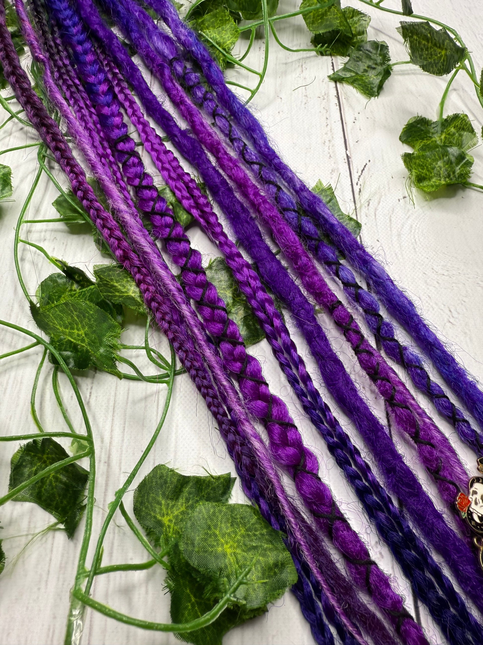This is a set of crochet single and double ended dreadlocks, twisted dreadlocks and braids. They have been decorated in assorted cottons and beads as shown in the photos.