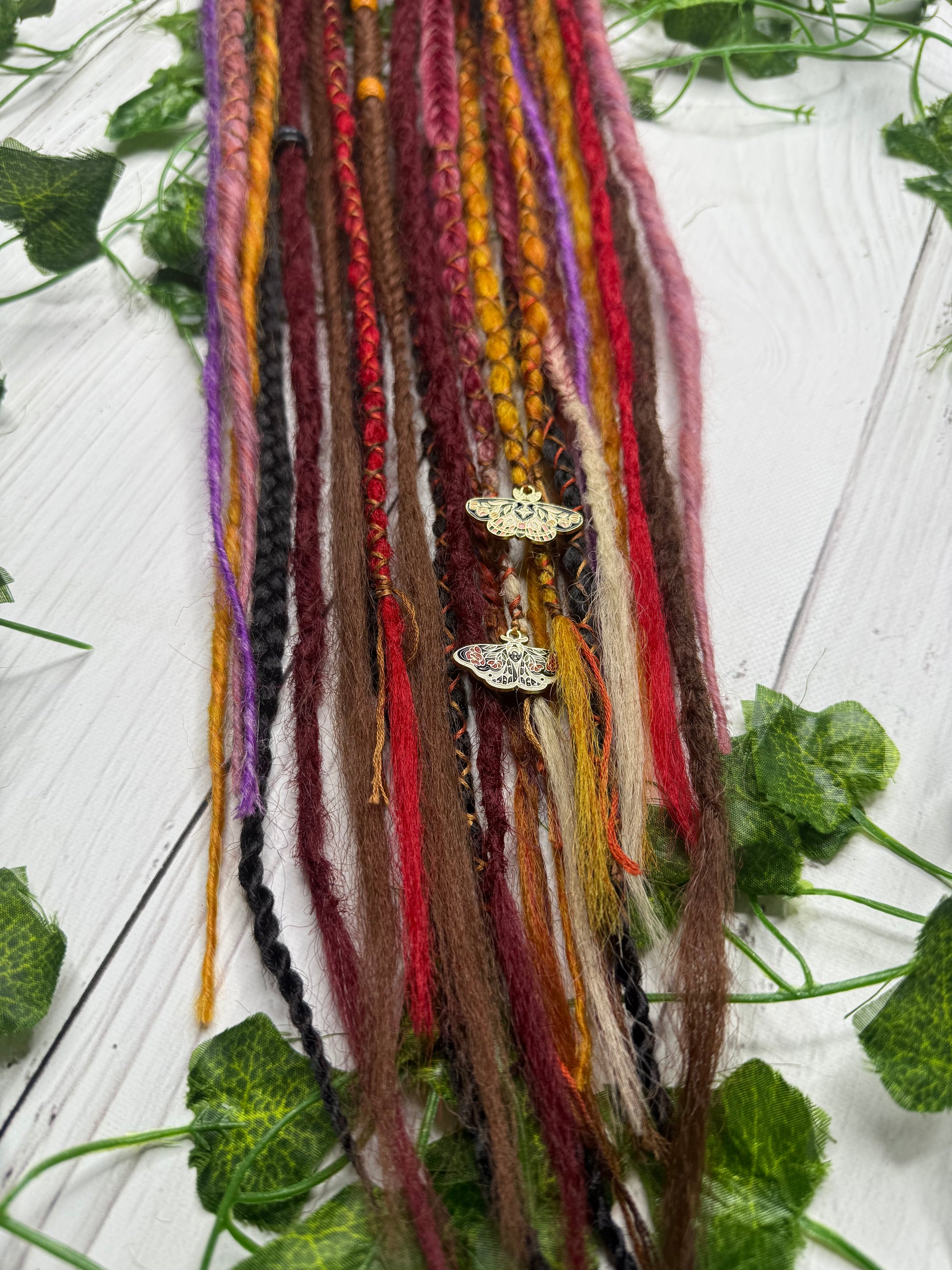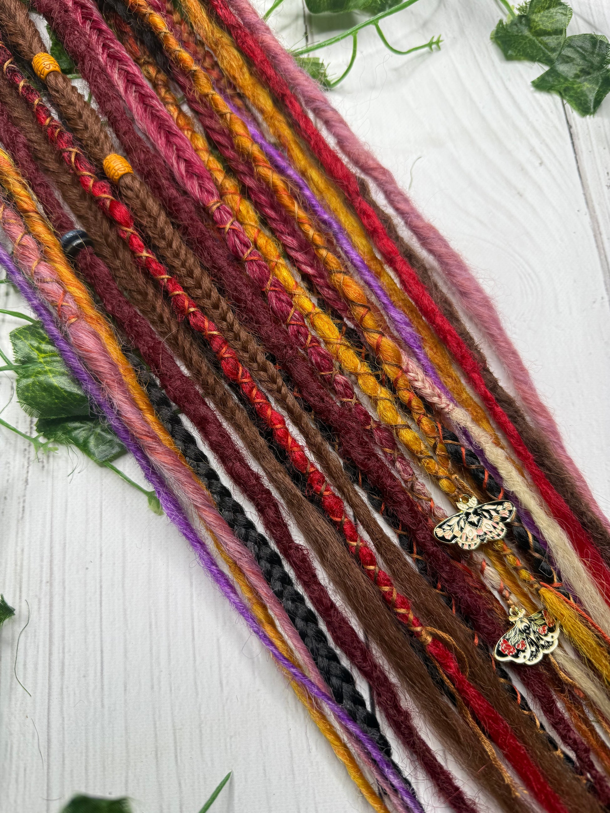 Decorations extensions can be added to dreadlocks or loose hair for added colour, length or volume. They're a fantastic way to satisfy the urge to dye or change your hair/dreadlocks. The decorations are not added permanently but you can wear them for as long as you choose. They're very easy to self-install and since they're reusable you can wear them time and time again whenever you like! Owning multiple colour combinations is the best way to satisfy that urge for change without changing your dreadlock set long-term.