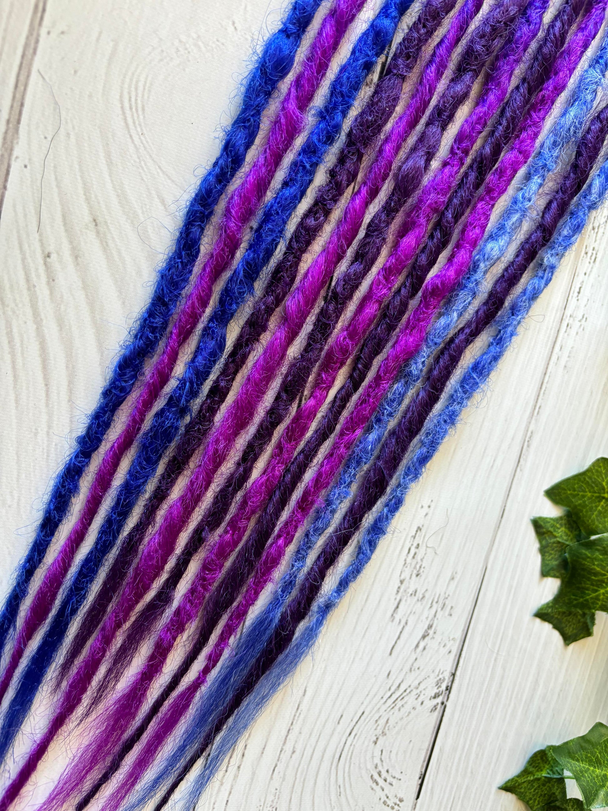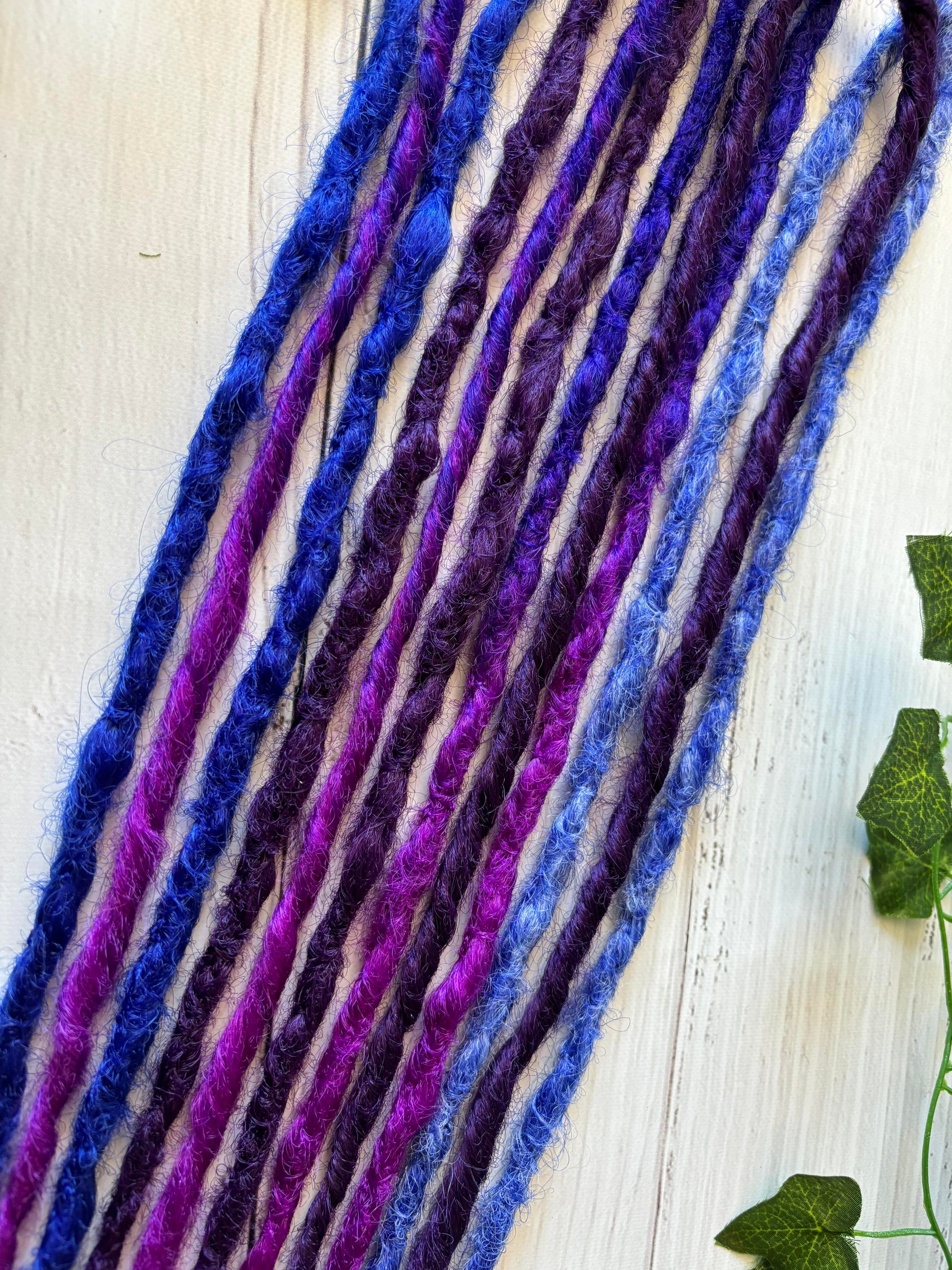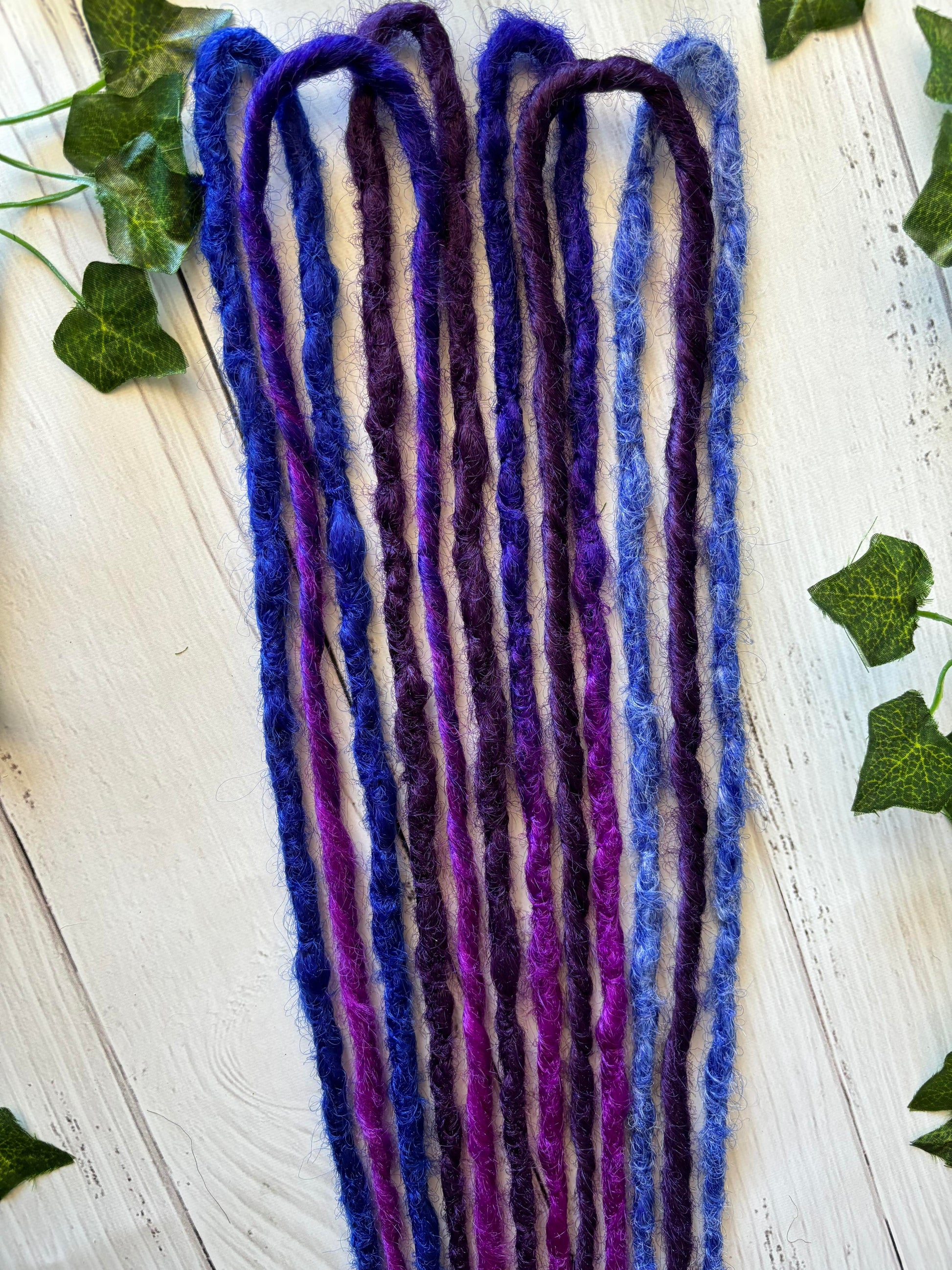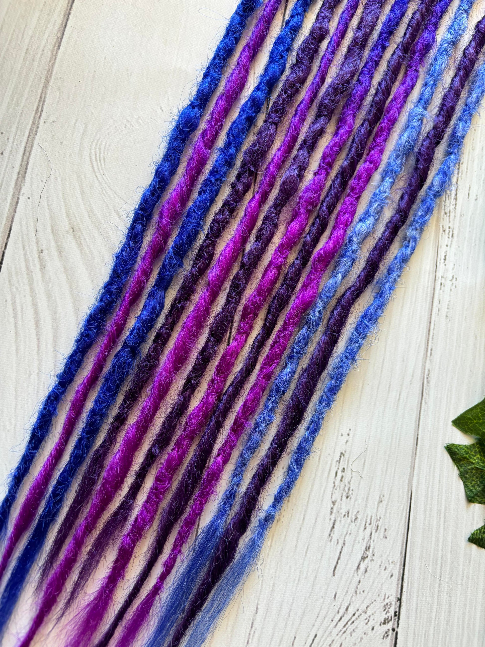 This set is a mix of crochet-style and smooth style dreadlocks. They're double ended which means by ordering 5 you will actually end up with 10 coloured ends decorating your dreadlocks.