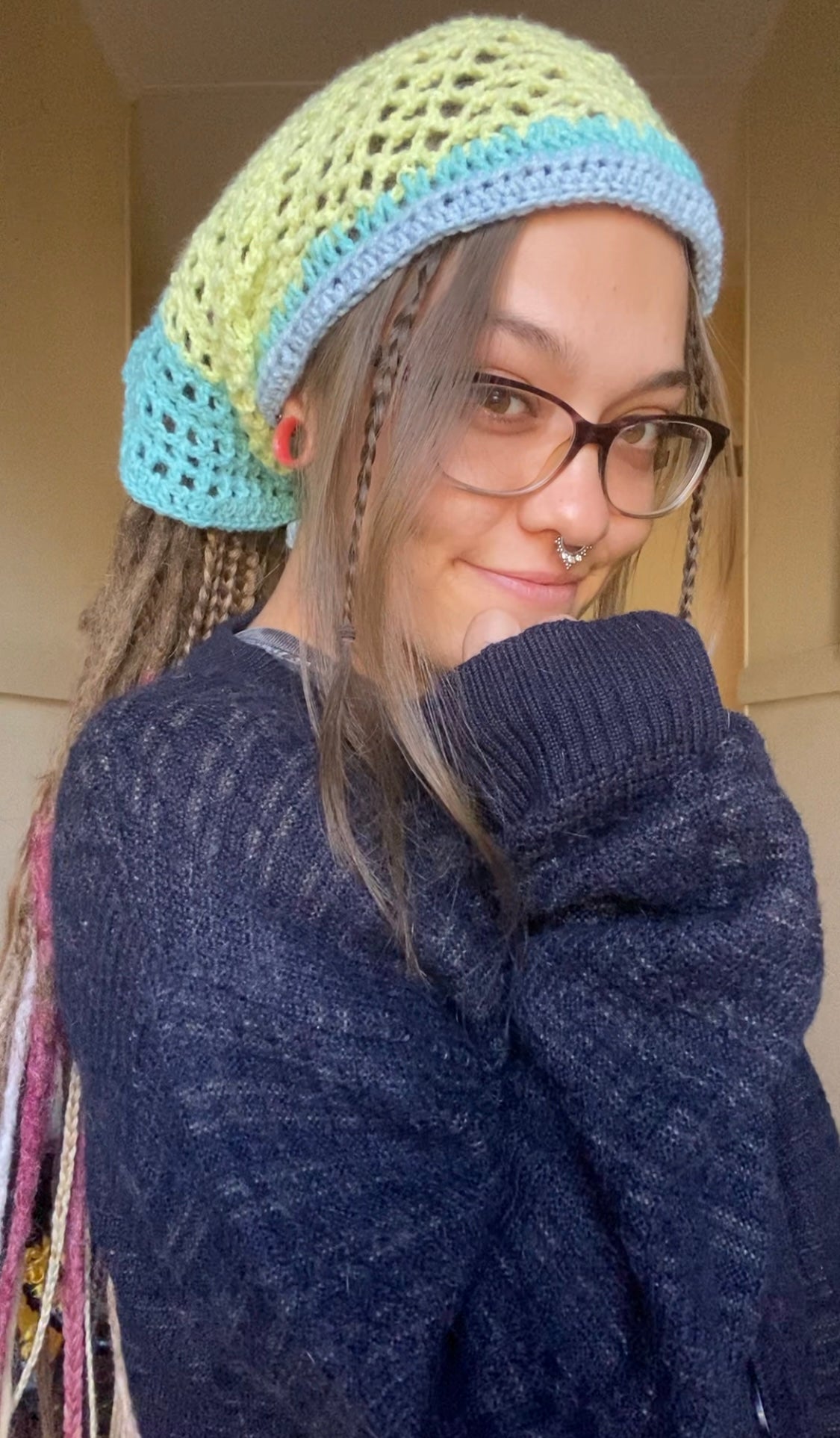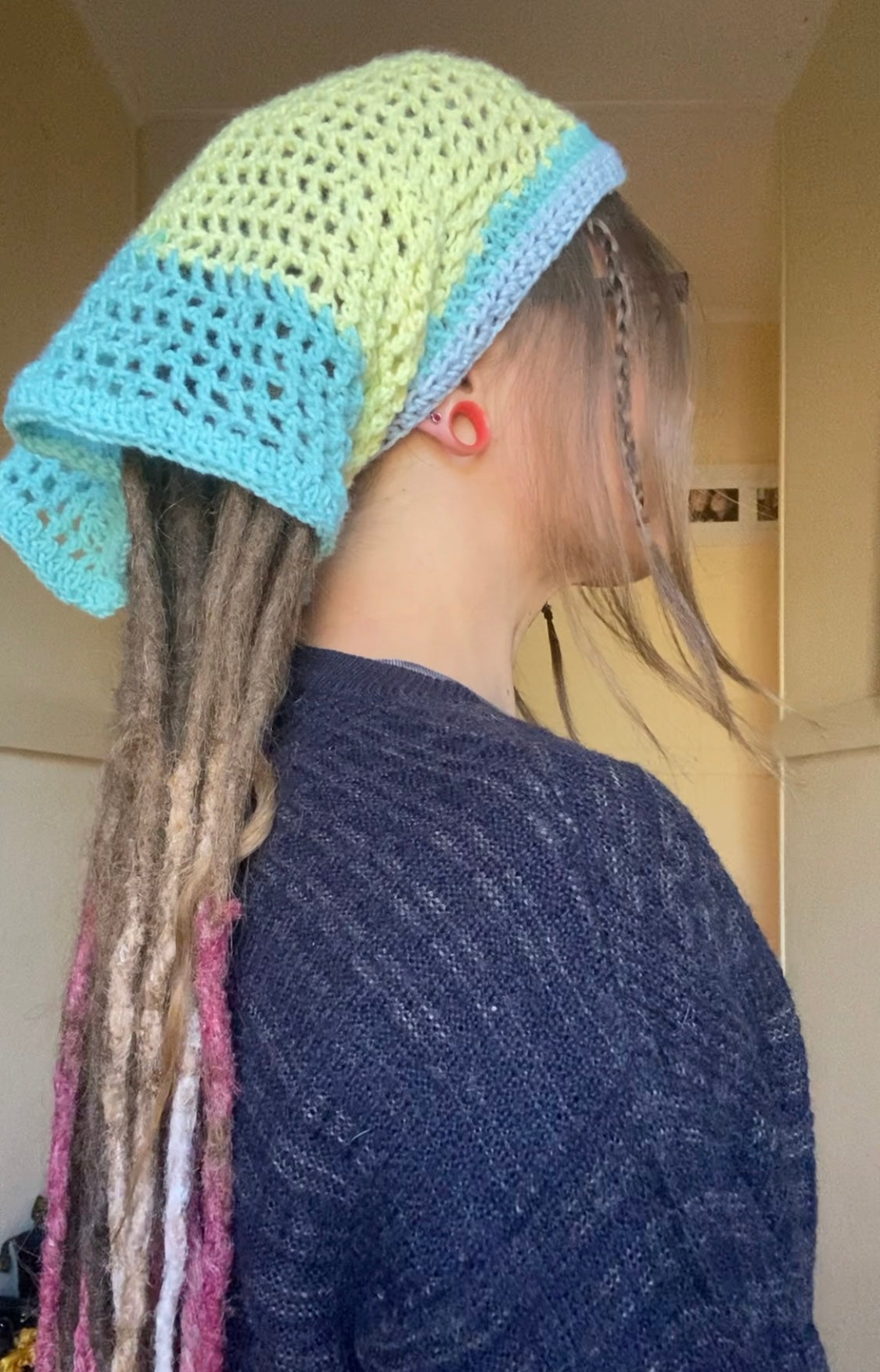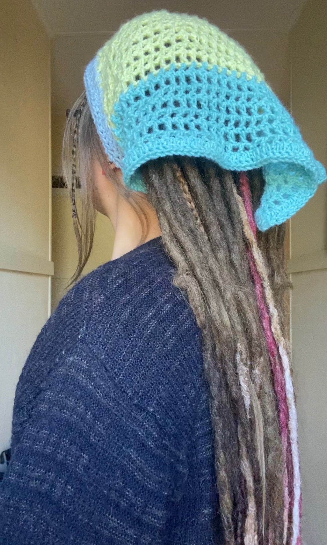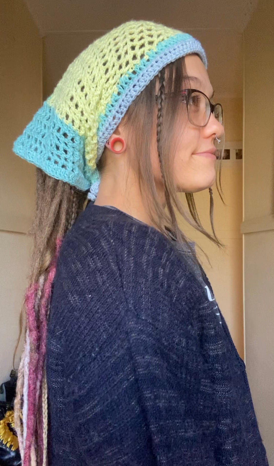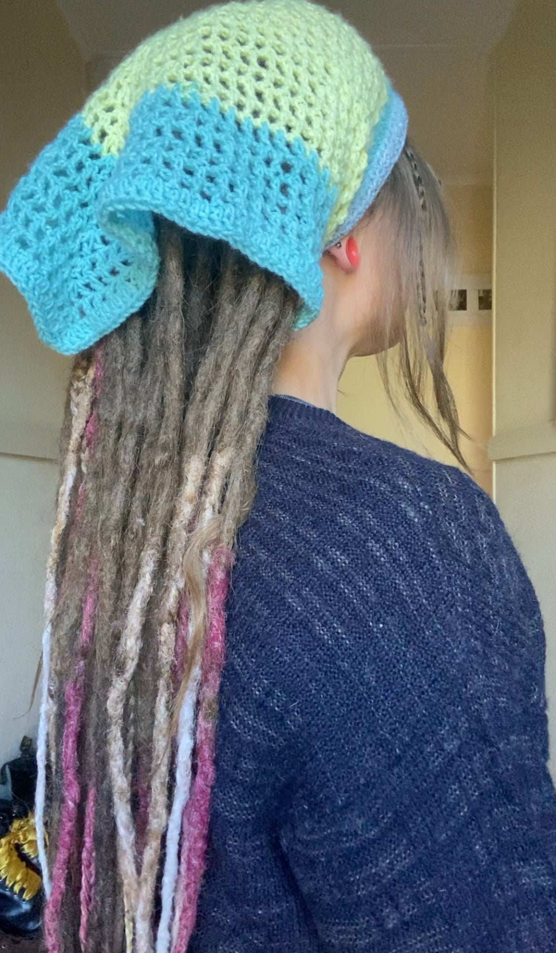 All beanies and headbands are handmade, one of a kind and made with care. They’re made large so that there is enough room for your locks!