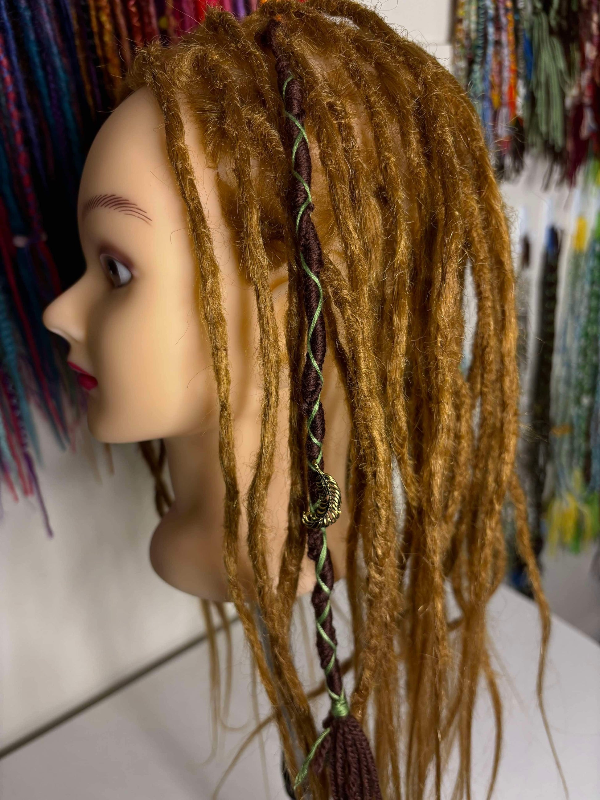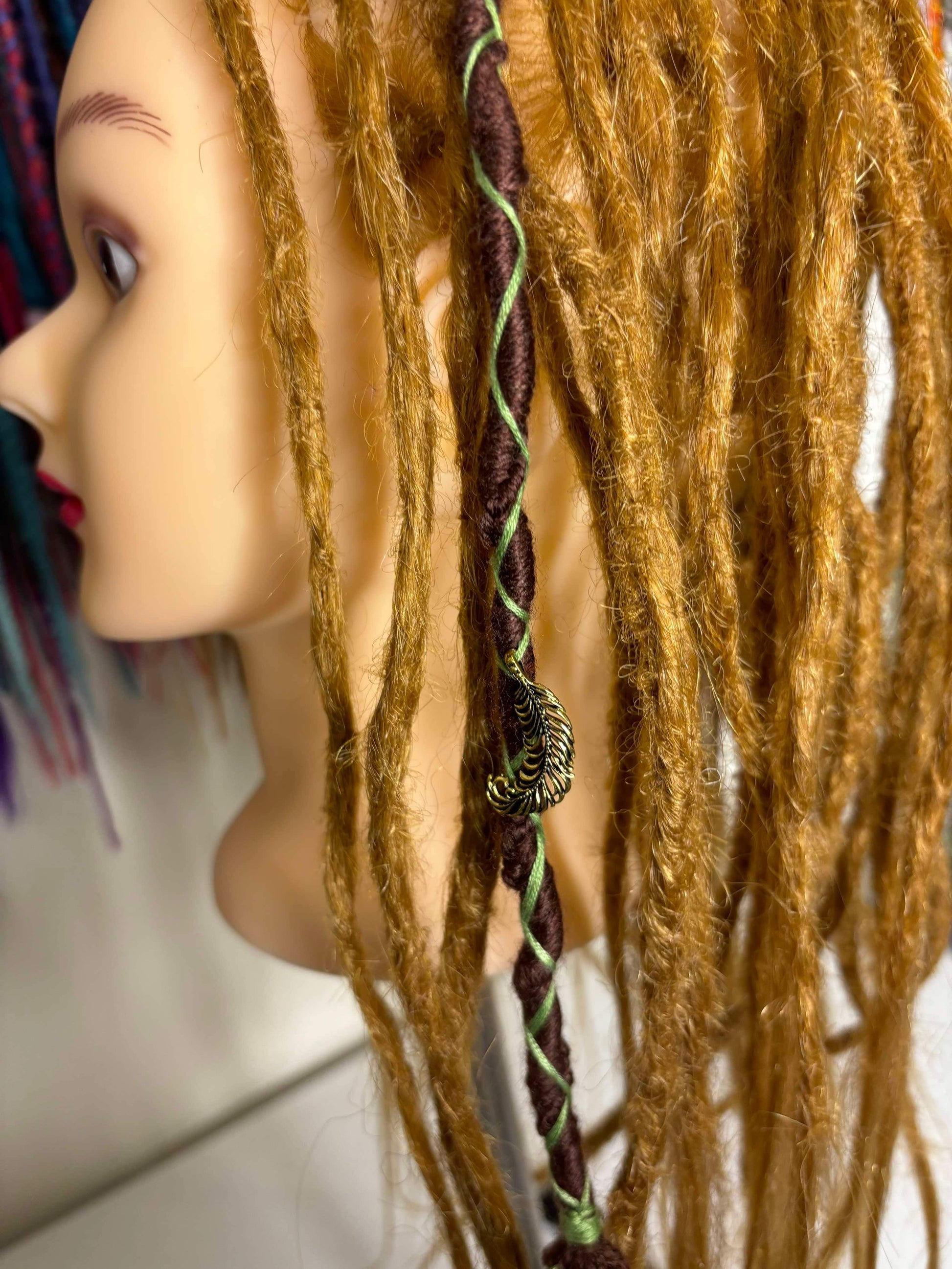 Wearing beads or thread wrapping your dreadlocks can be damaging overtime as it can cause weak spots with in the body of the dreadlock. I have created my lunalockshop dreadlock wraps so that you can have the look of decorated dreadlocks without the stress of damage!