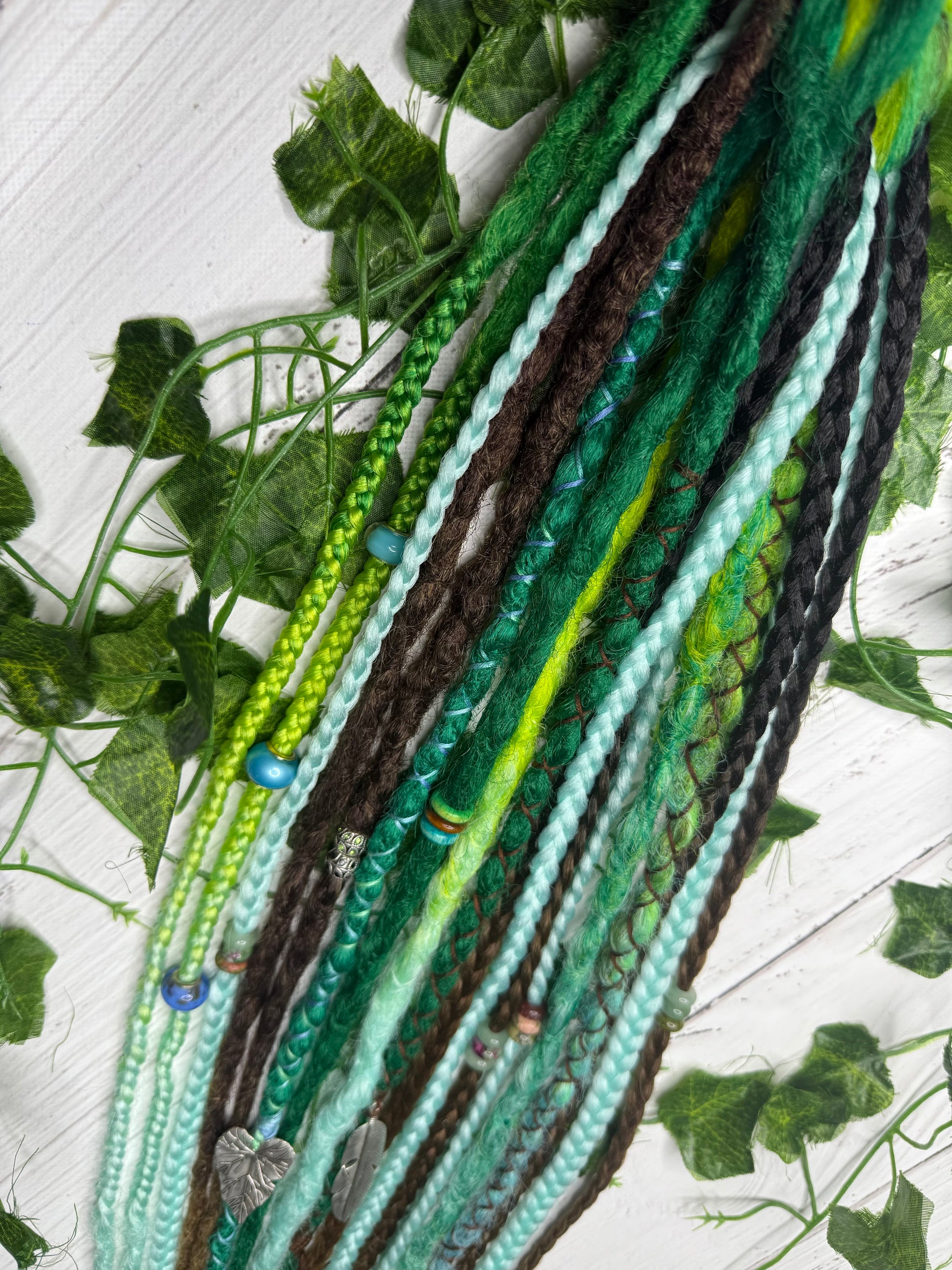This is a mixed texture set of crochet dreadlocks and braids. They have been decorated in assorted beads, charms and cotton as shown in the photos.