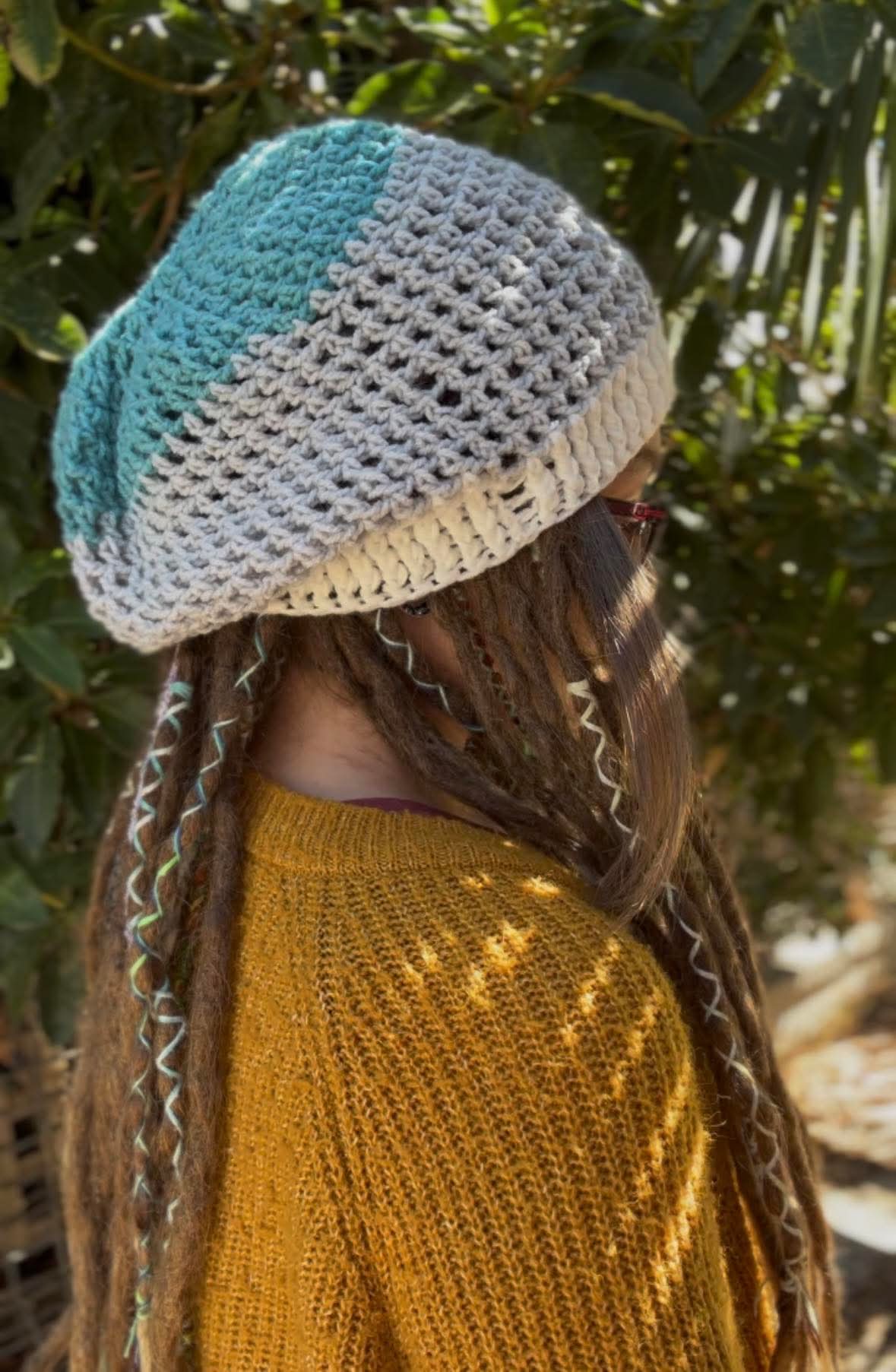 All beanies and headbands are handmade, one of a kind and made with care. They’re made large so that there is enough room for your locks!