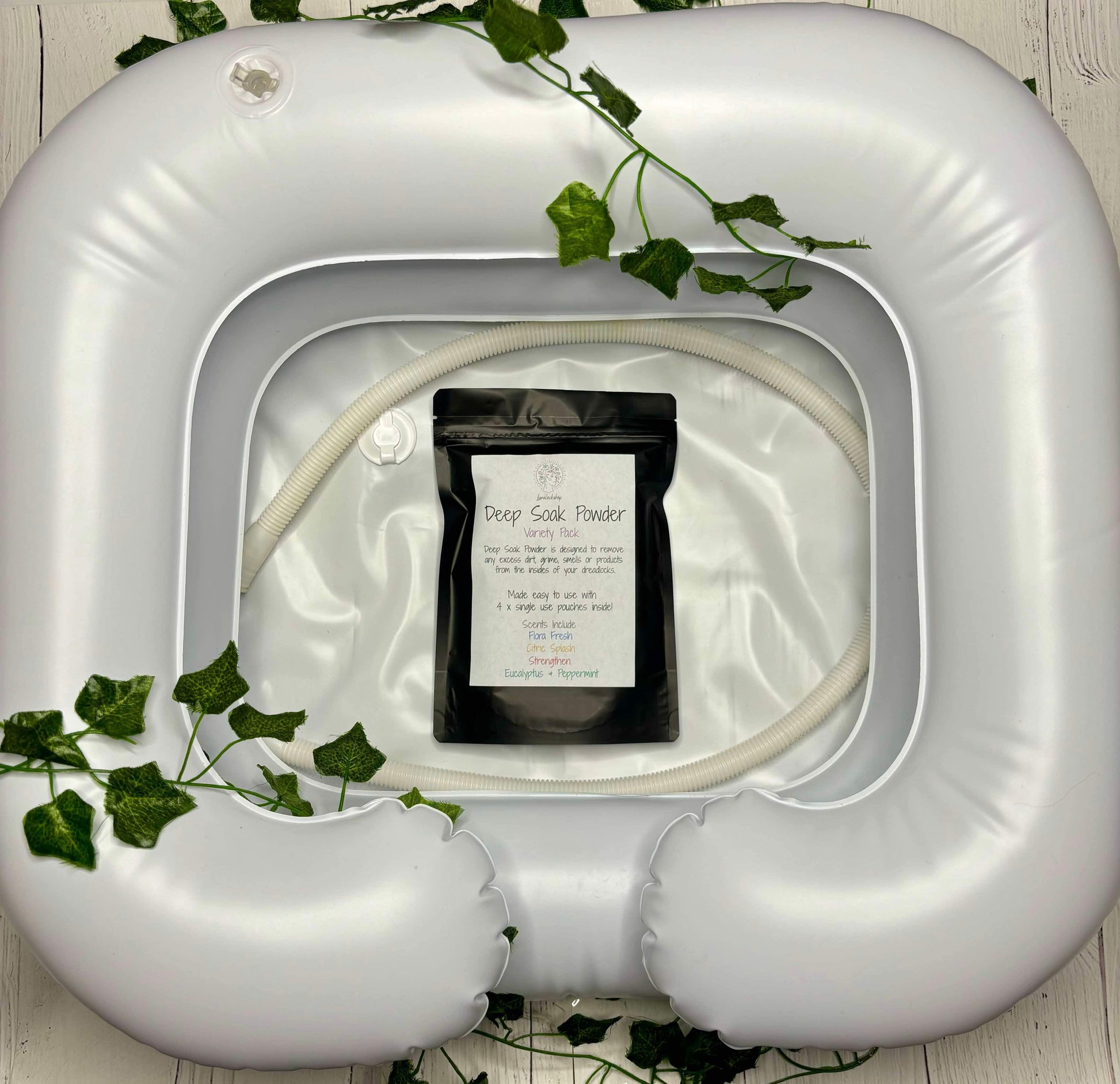 An inflatable basin is a life saver when you’re needing to deep soak your dreadlocks!