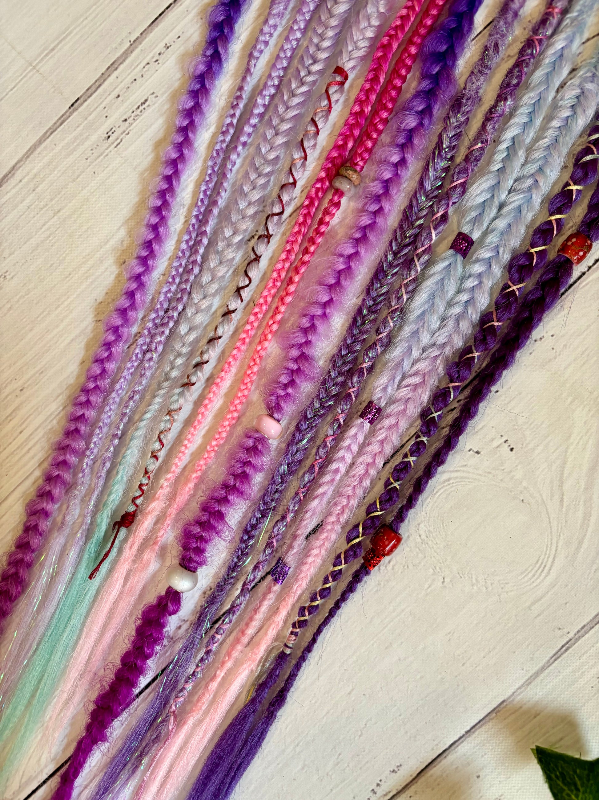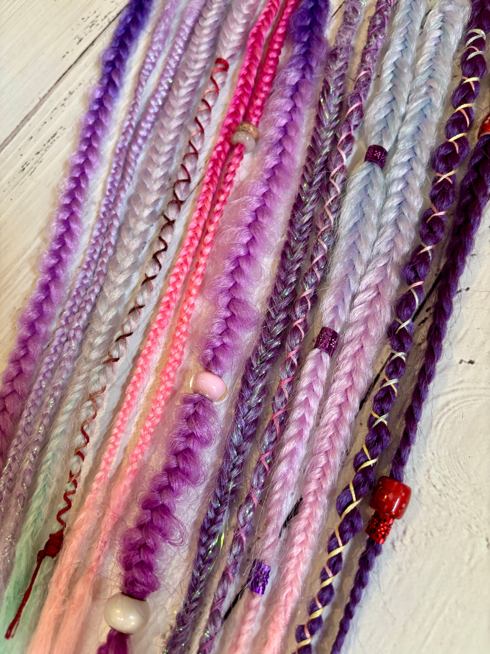 Add these soft purple and pink colours to your hair/dreadlocks in just a few minutes!