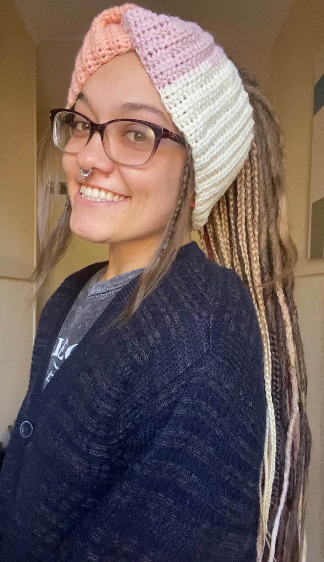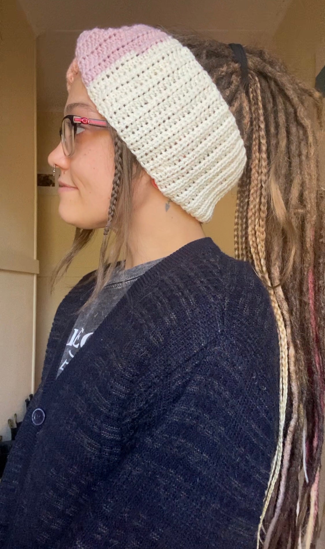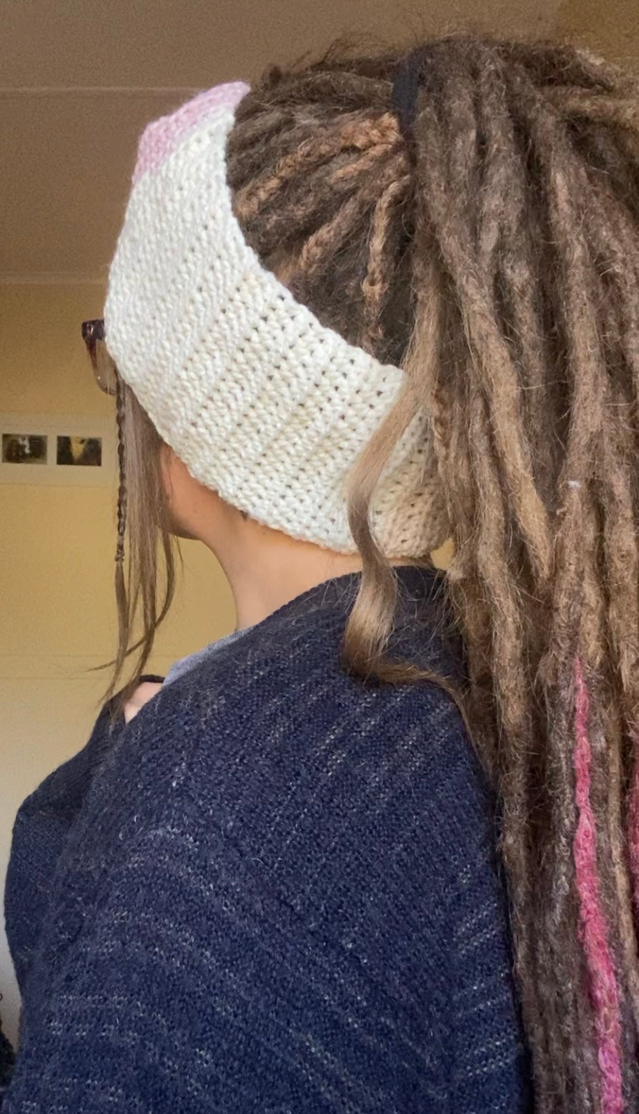 All beanies and headbands are handmade, one of a kind and made with care. They’re made large so that there is enough room for your locks!