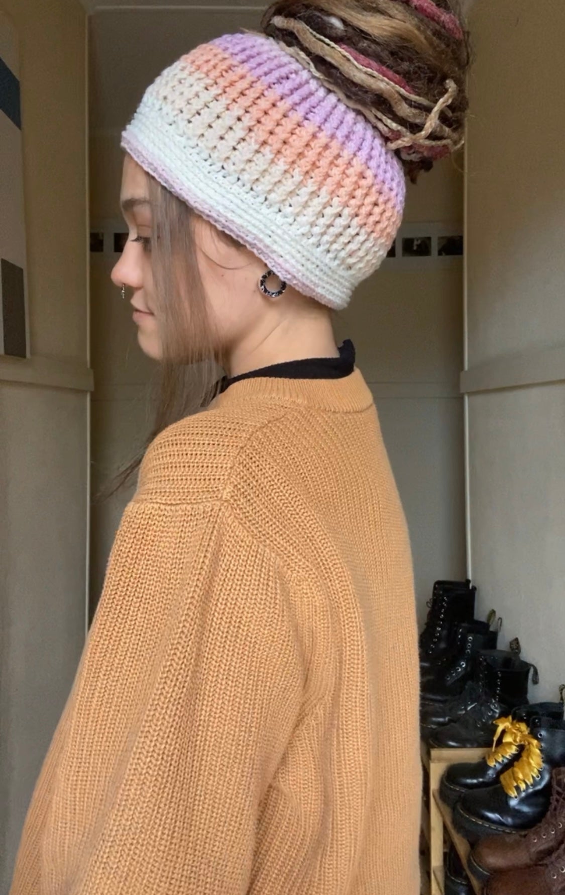 Pink Handmade Beanie with hole