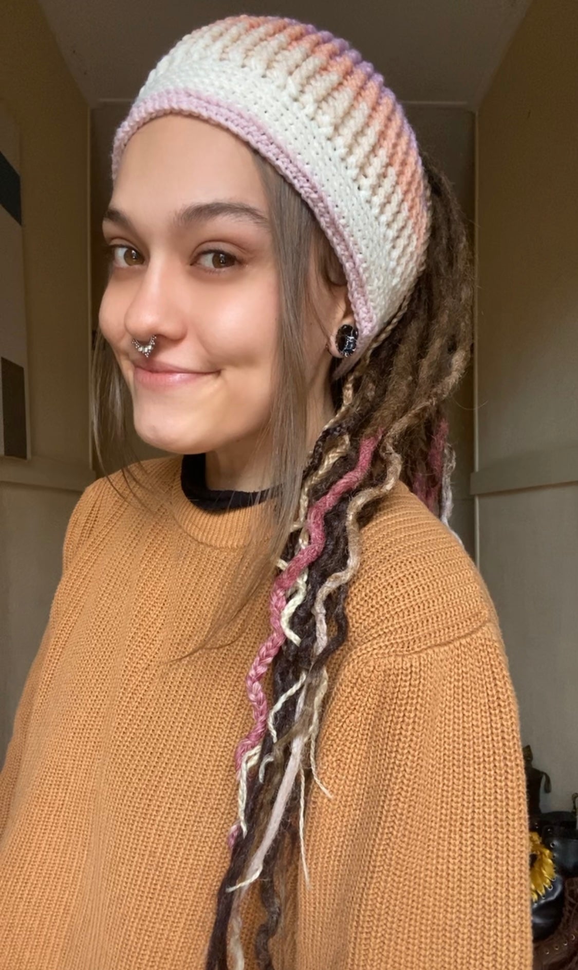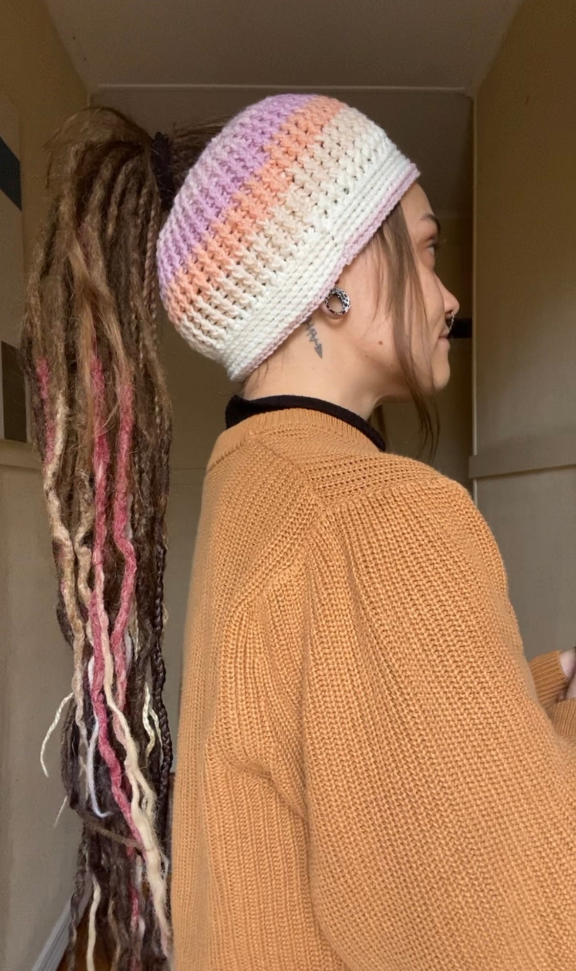 All beanies and headbands are handmade, one of a kind and made with care. They’re made large so that there is enough room for your locks!