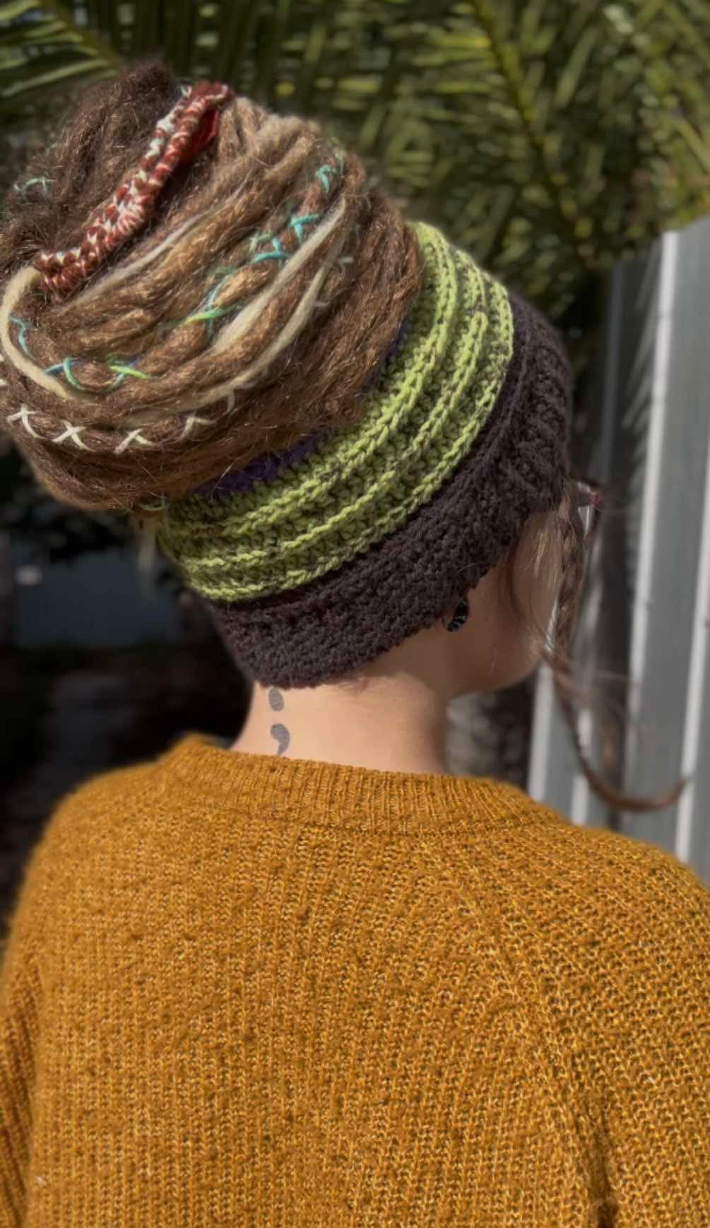 All beanies and headbands are handmade, one of a kind and made with care. They’re made large so that there is enough room for your locks!