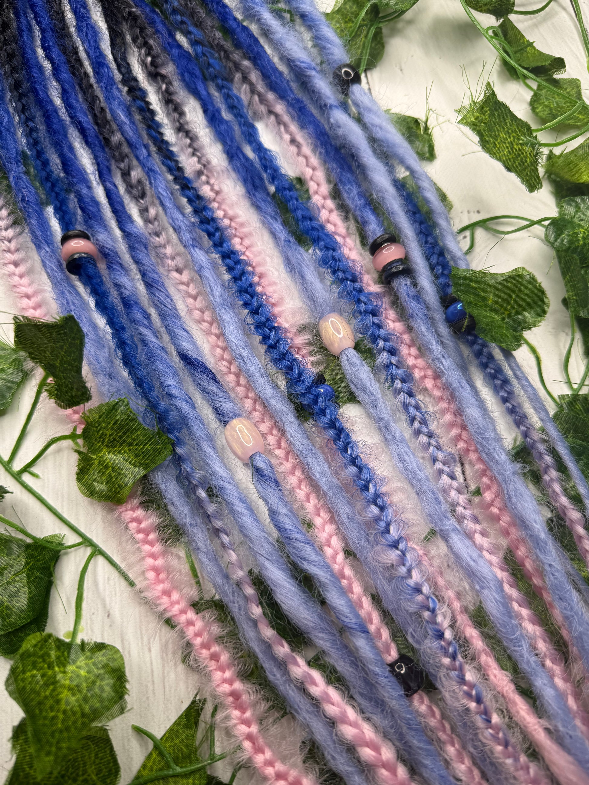 Decorations for extensions can be added to dreadlocks or loose hair for added colour, length or volume. They're a fantastic way to satisfy the urge to dye or change your hair/dreadlocks. The decorations are not added permanently but you can wear them for as long as you choose. They're very easy to self-install and since they're reusable you can wear them time and time again whenever you like! Owning multiple colour combinations is the best way to satisfy that urge for change without changing your dreadlock set long-term.