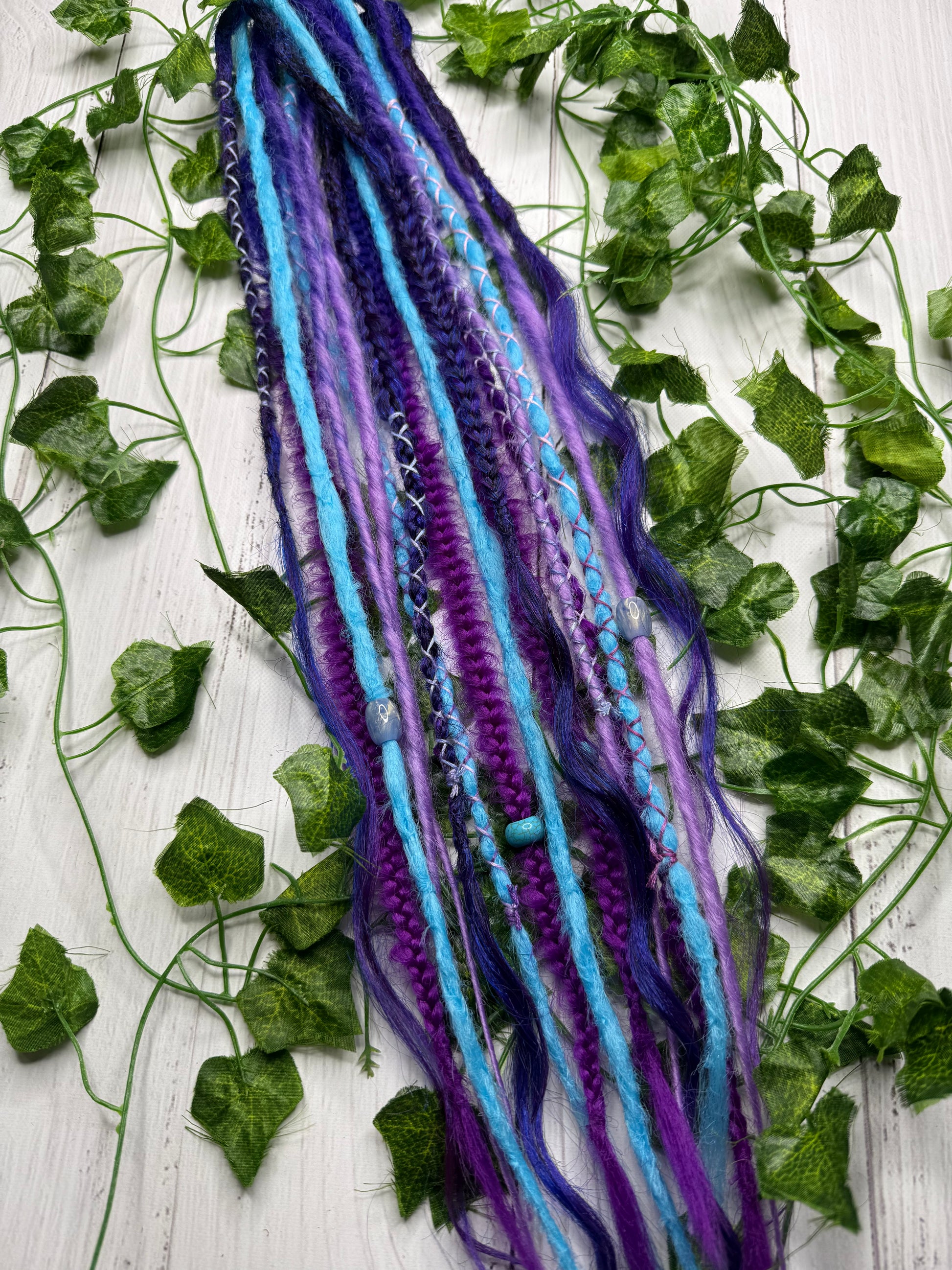 Decorations for extensions can be added to dreadlocks or loose hair for added colour, length or volume. They're a fantastic way to satisfy the urge to dye or change your hair/dreadlocks. The decorations are not added permanently but you can wear them for as long as you choose. They're very easy to self-install and since they're reusable you can wear them time and time again whenever you like! Owning multiple colour combinations is the best way to satisfy that urge for change without changing your dreadlock set long-term.