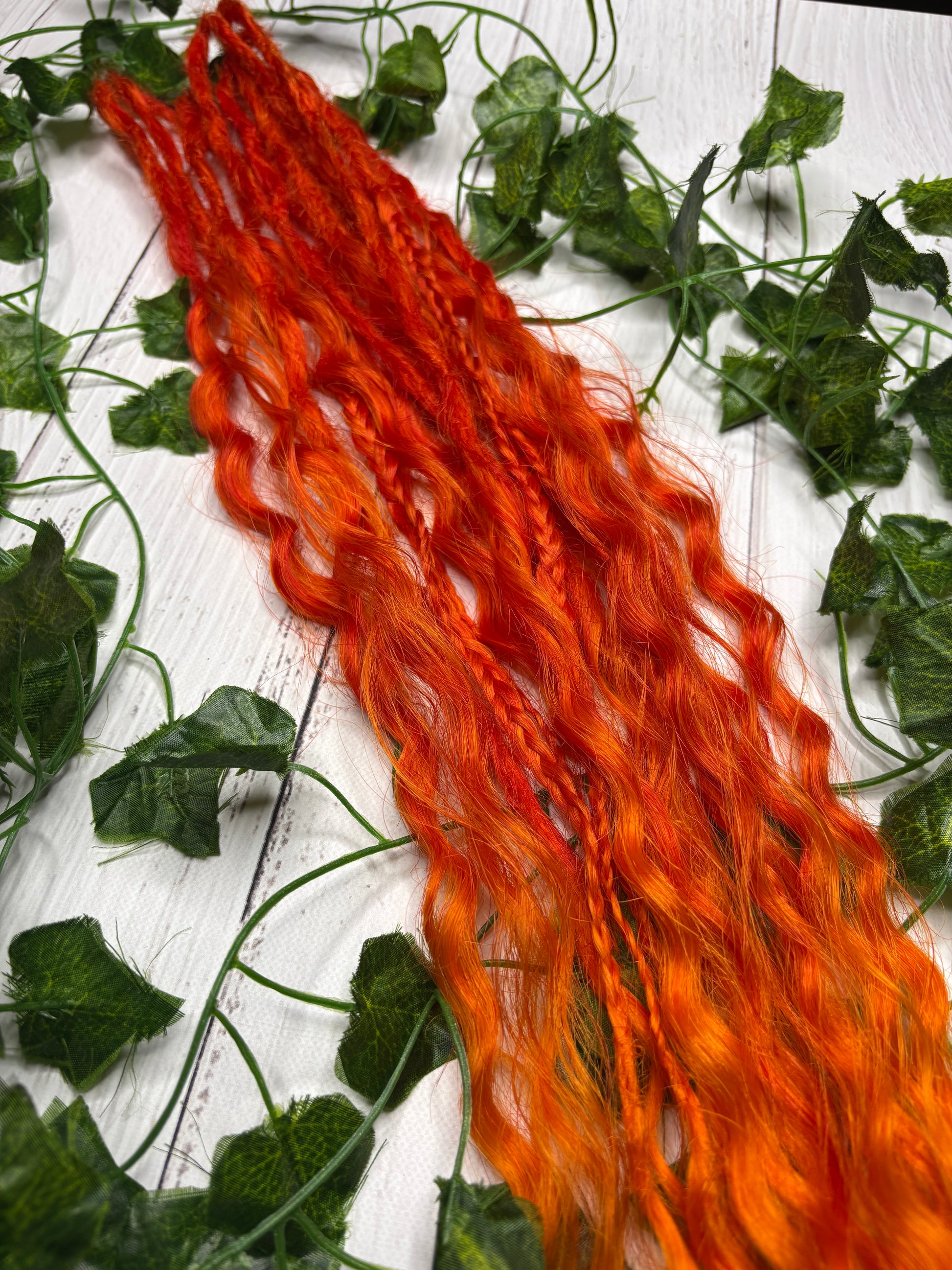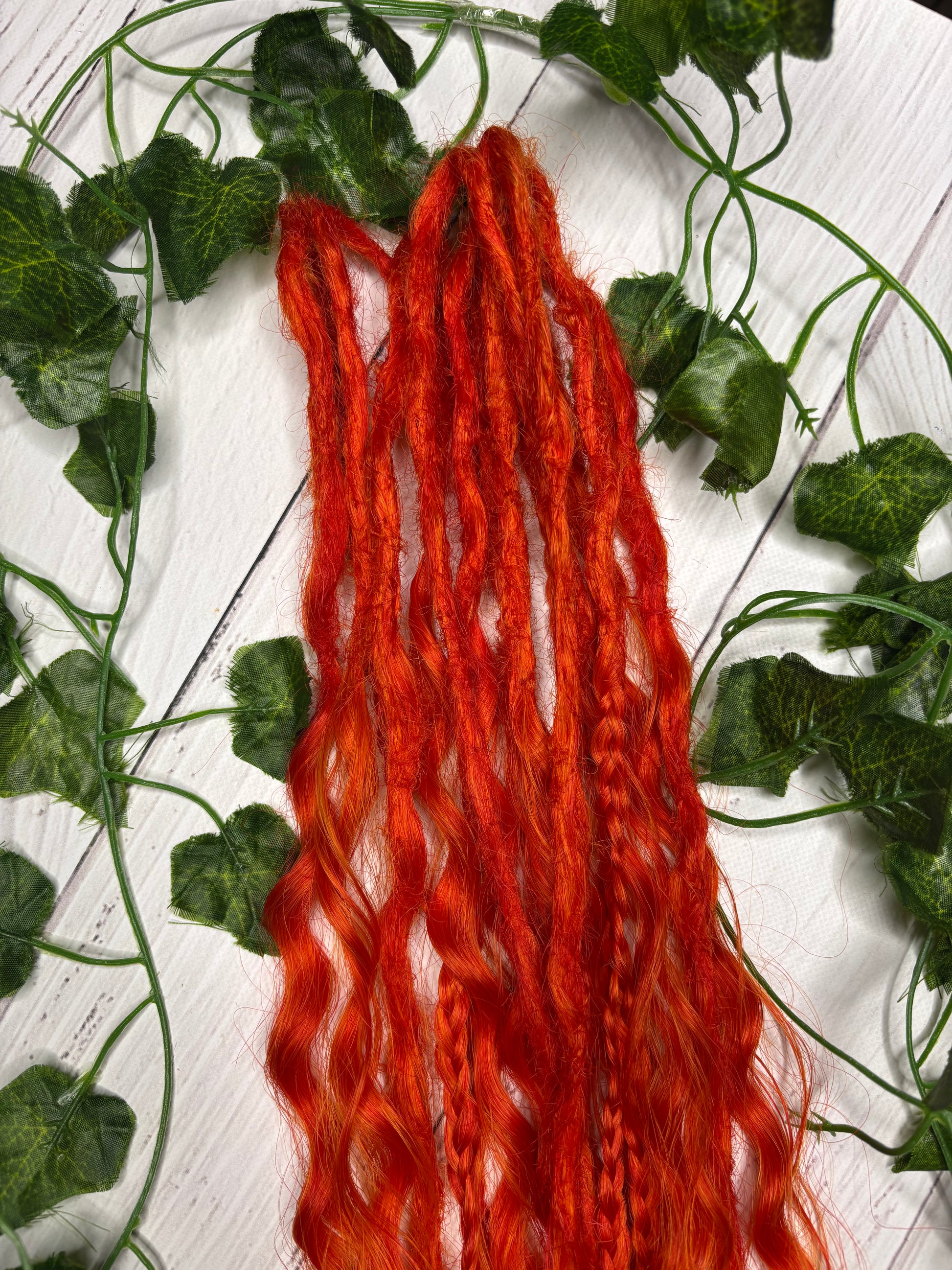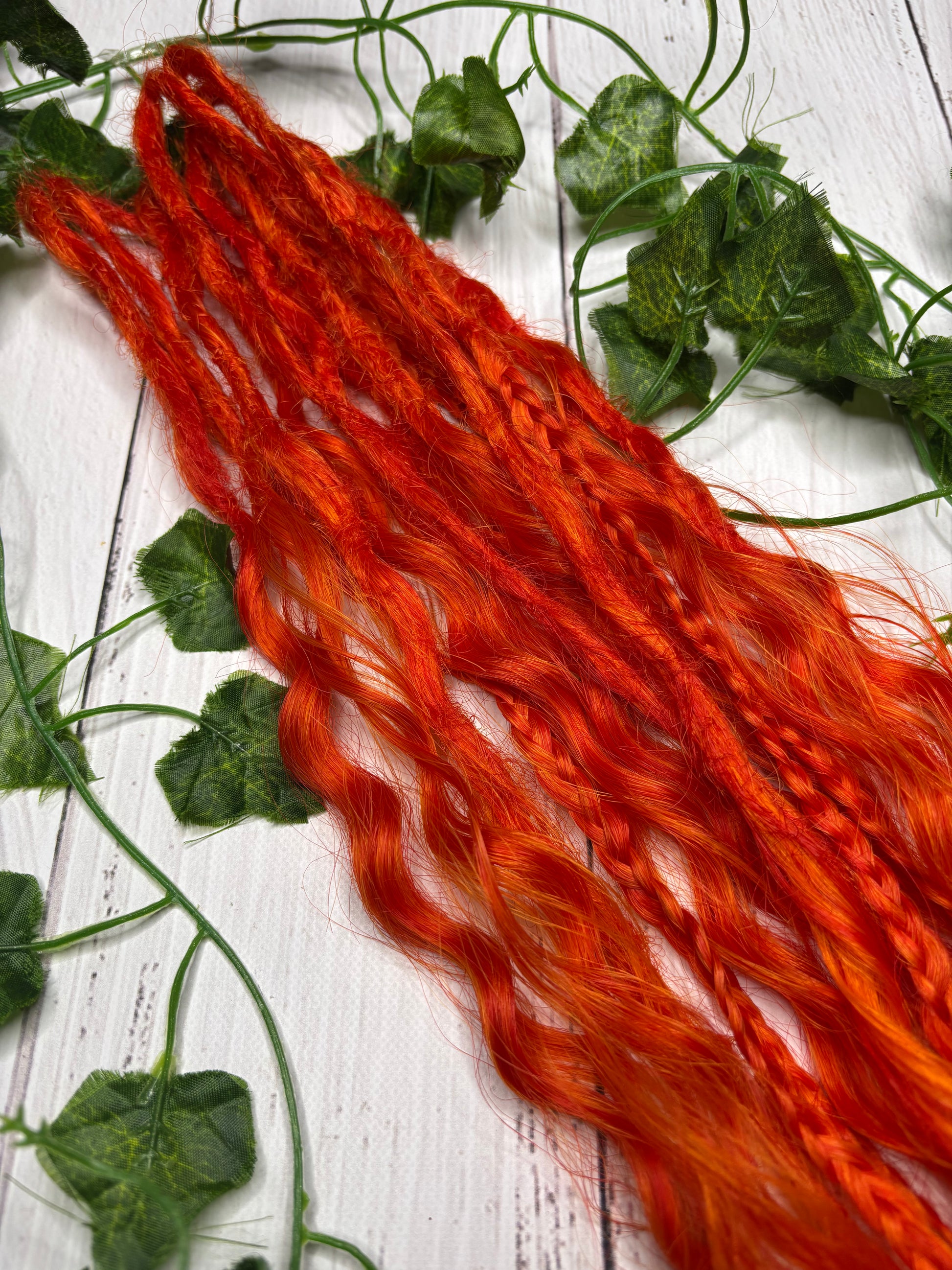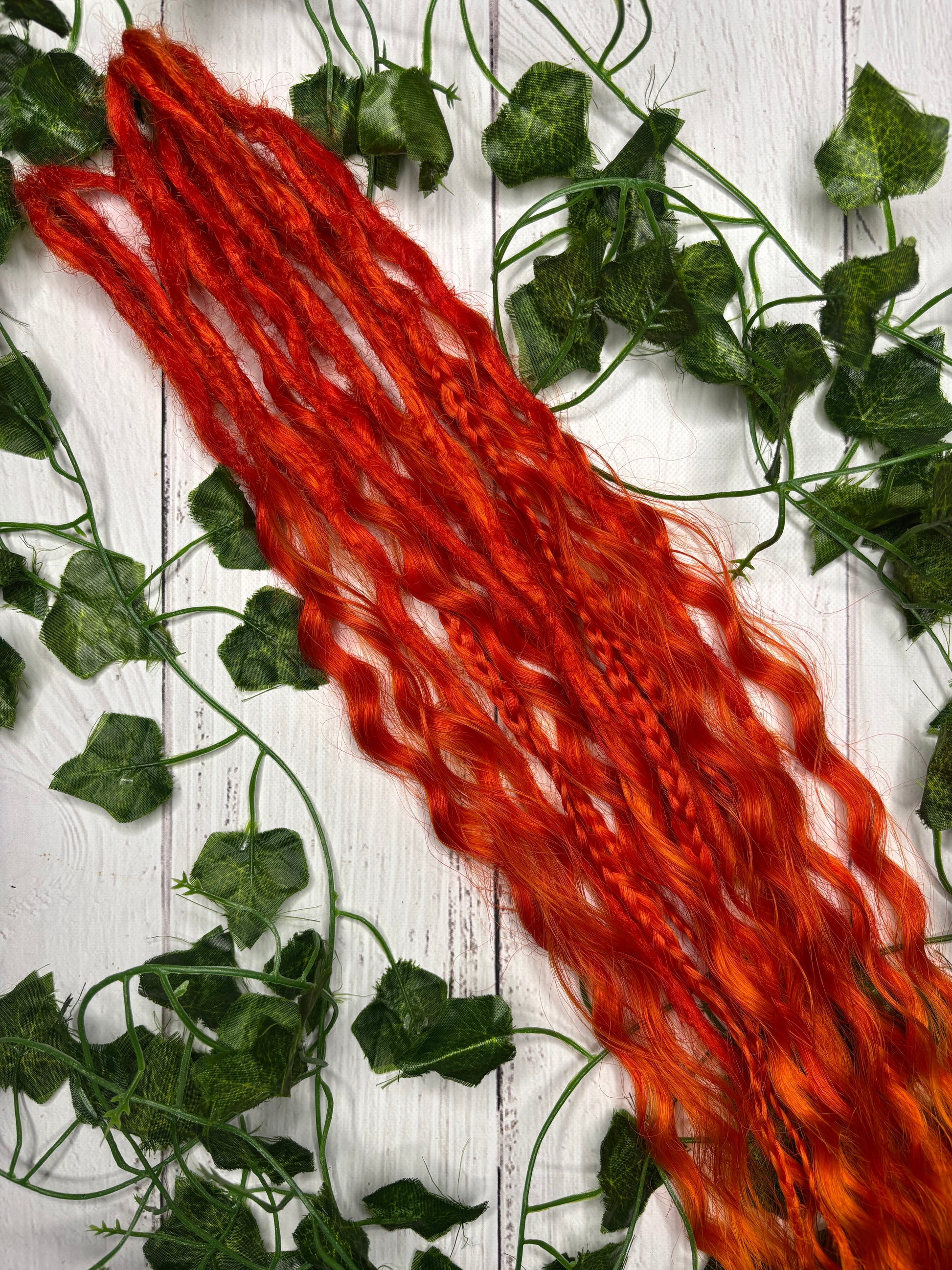 Set of 9 Red-Orange Mixed Texture Synthetic Dreadlock Extensions (only available for online purchase)