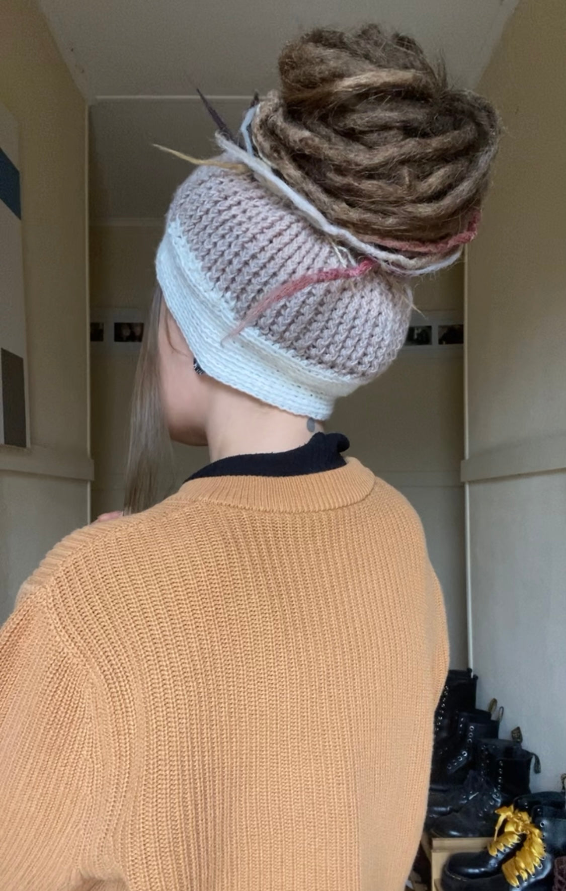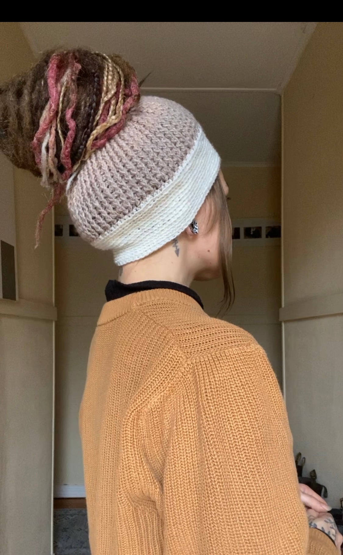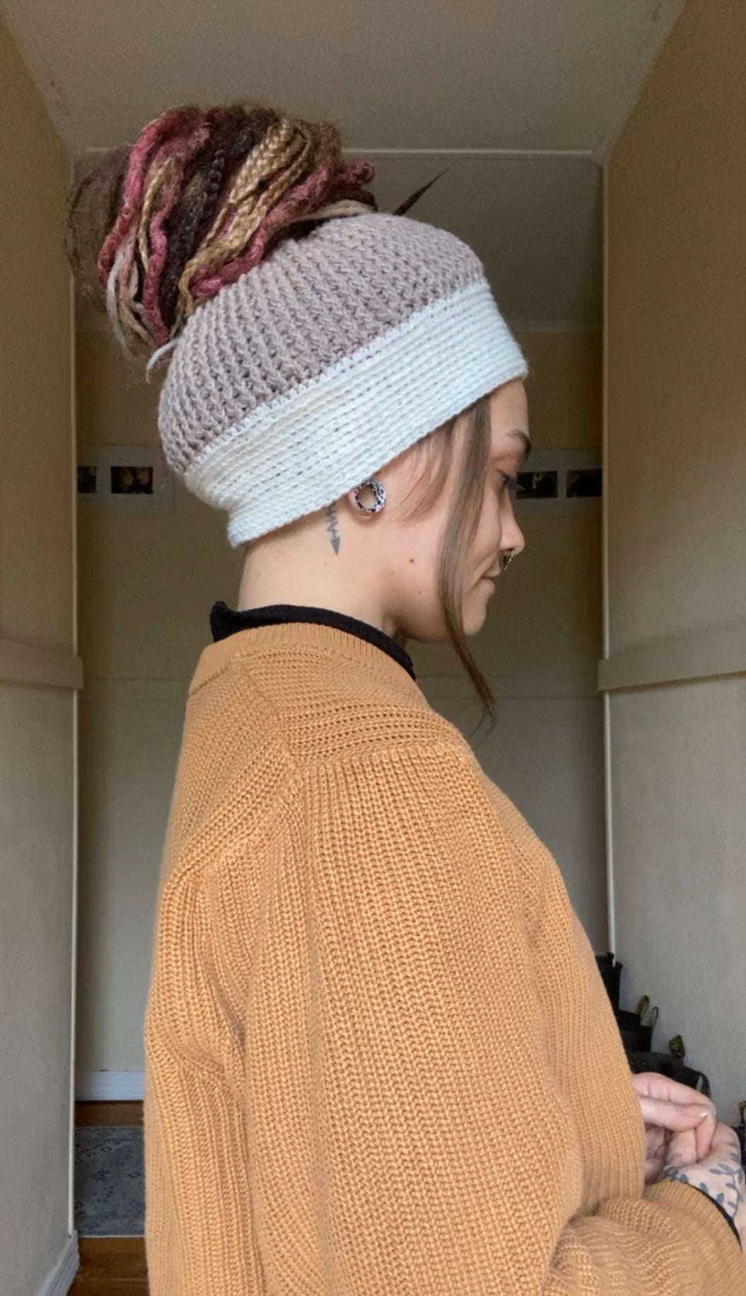 All beanies and headbands are handmade, one of a kind and made with care. They’re made large so that there is enough room for your locks!