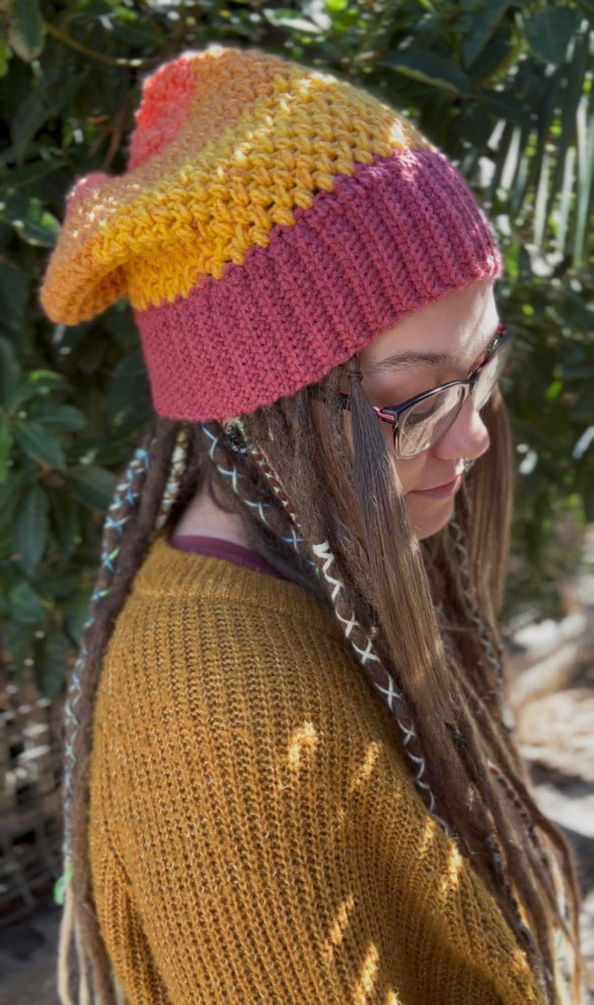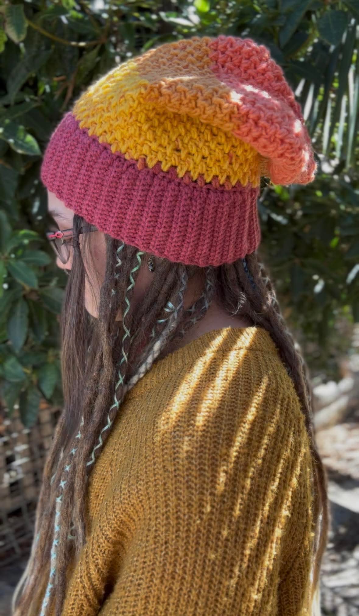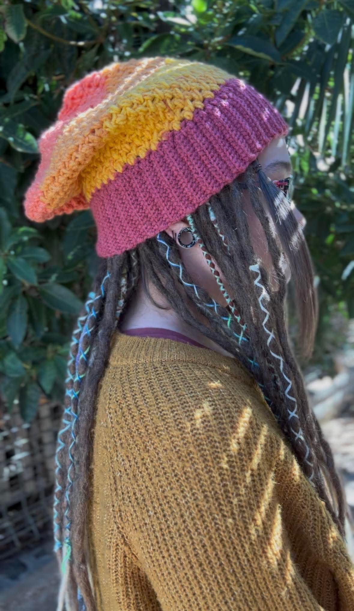 All beanies and headbands are handmade, one of a kind and made with care. They’re made large so that there is enough room for your locks!