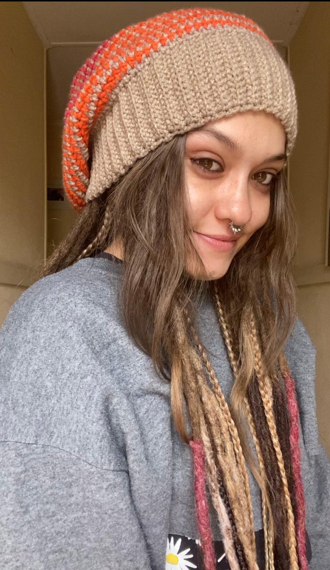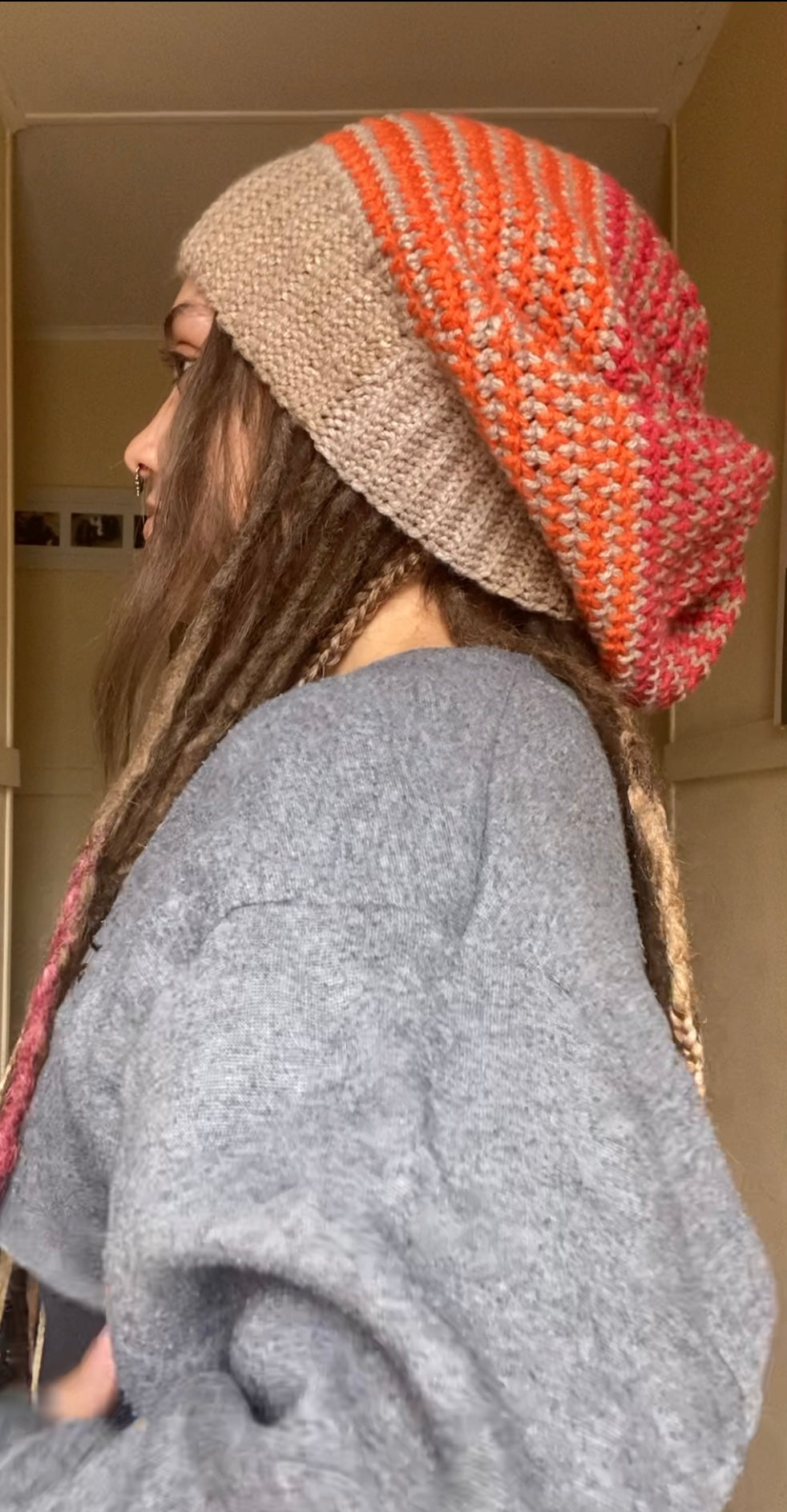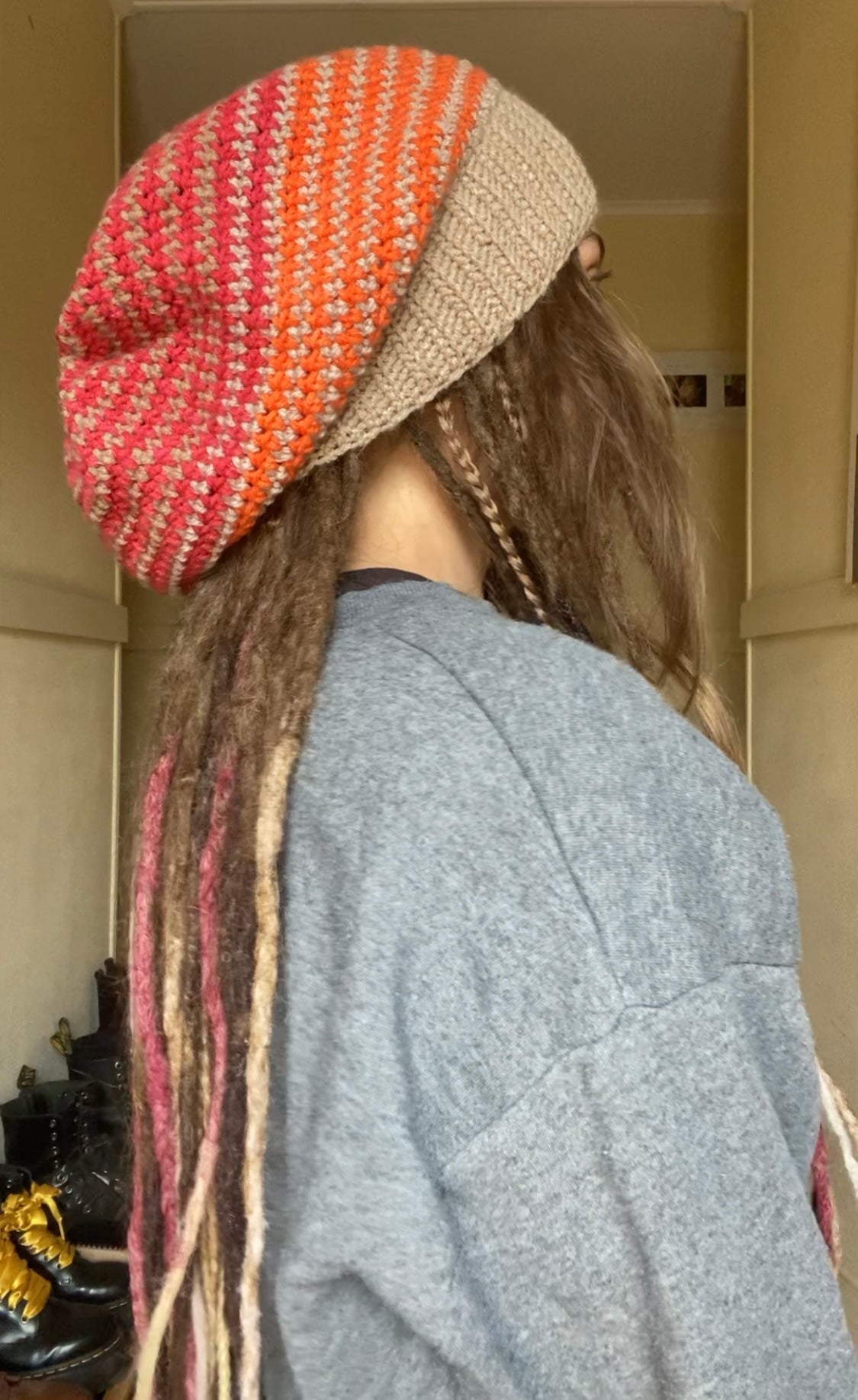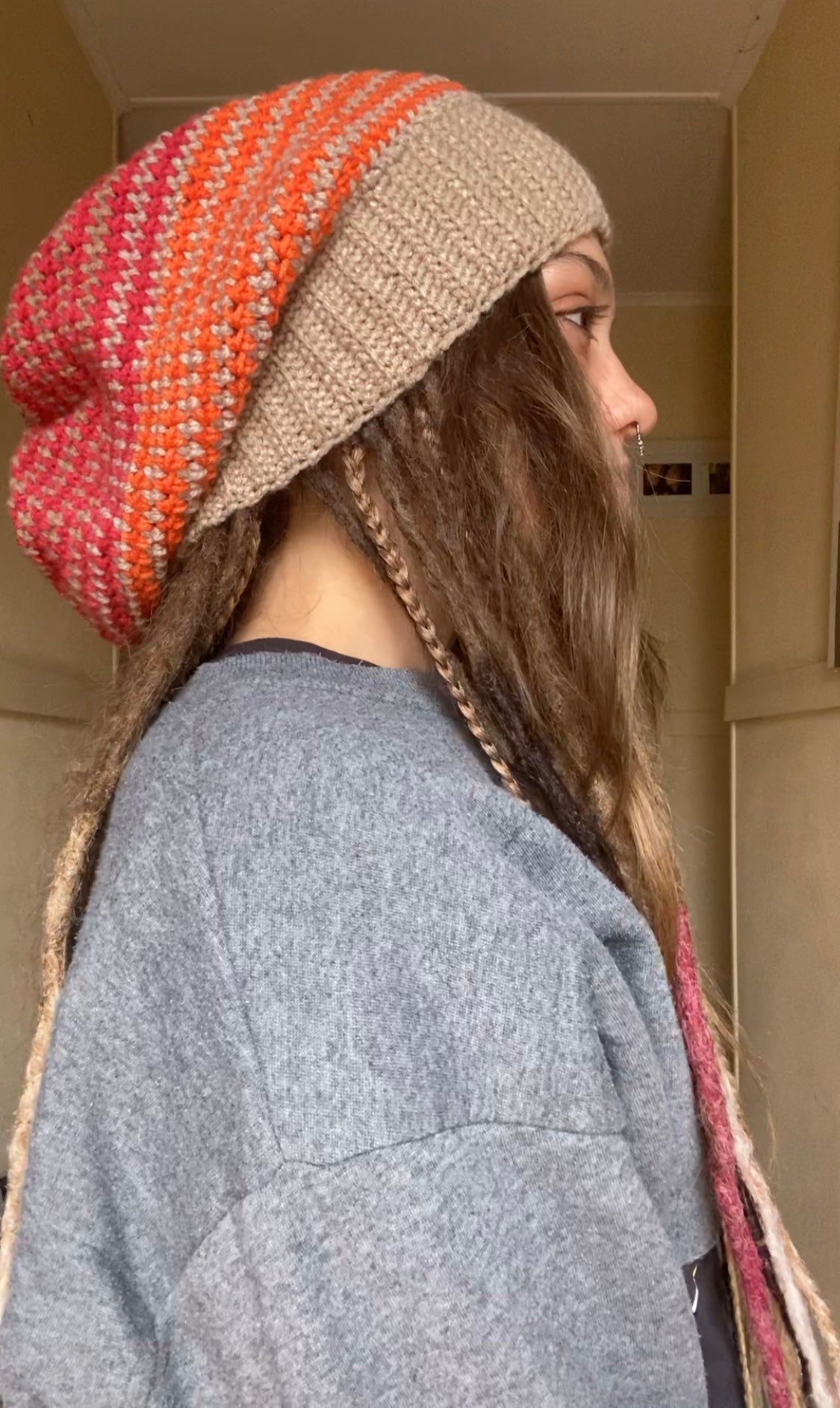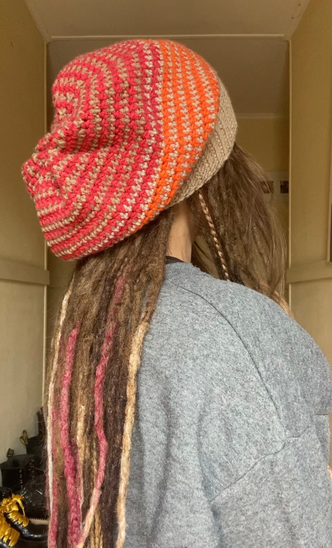 All beanies and headbands are handmade, one of a kind and made with care. They’re made large so that there is enough room for your locks!