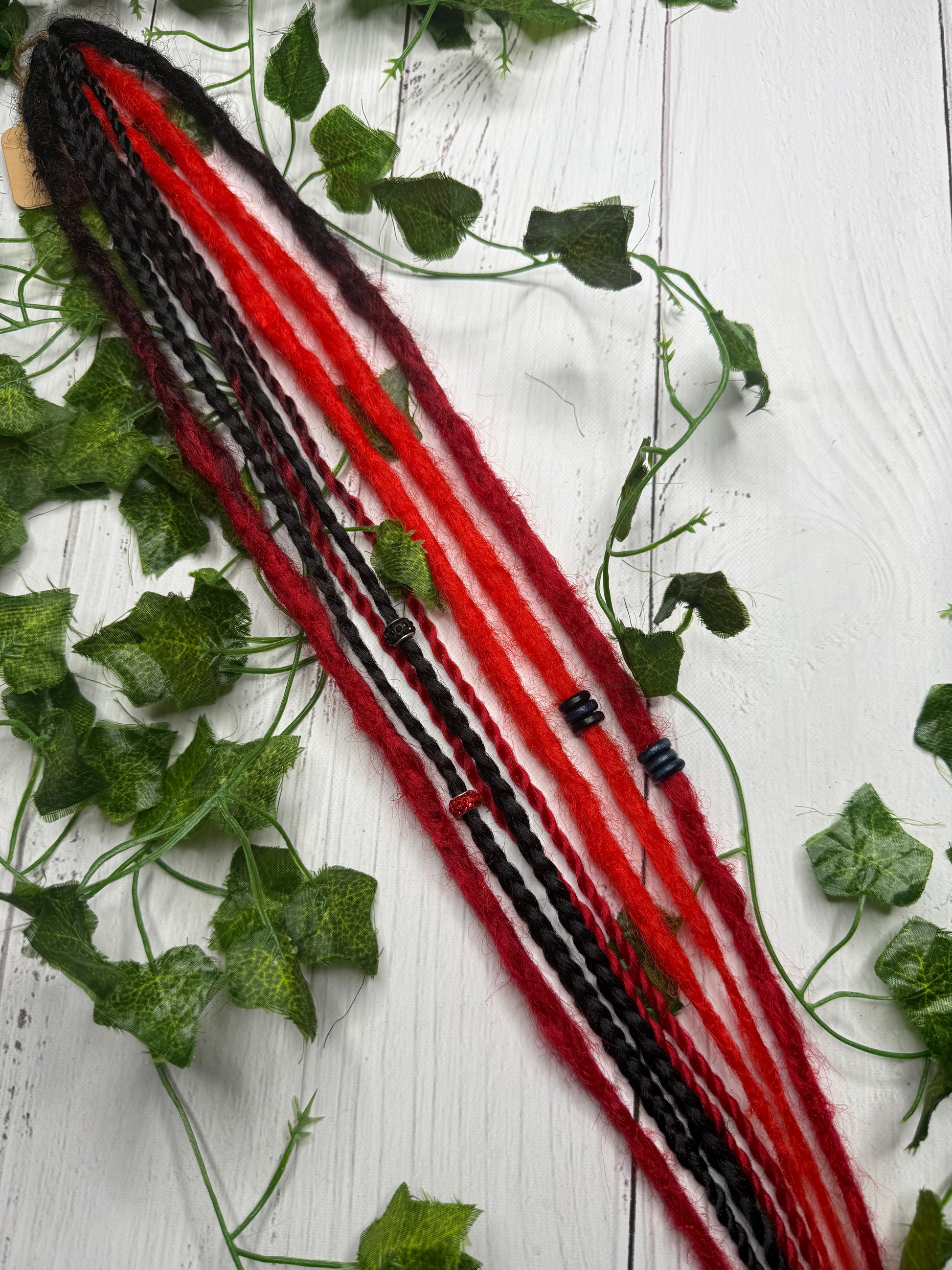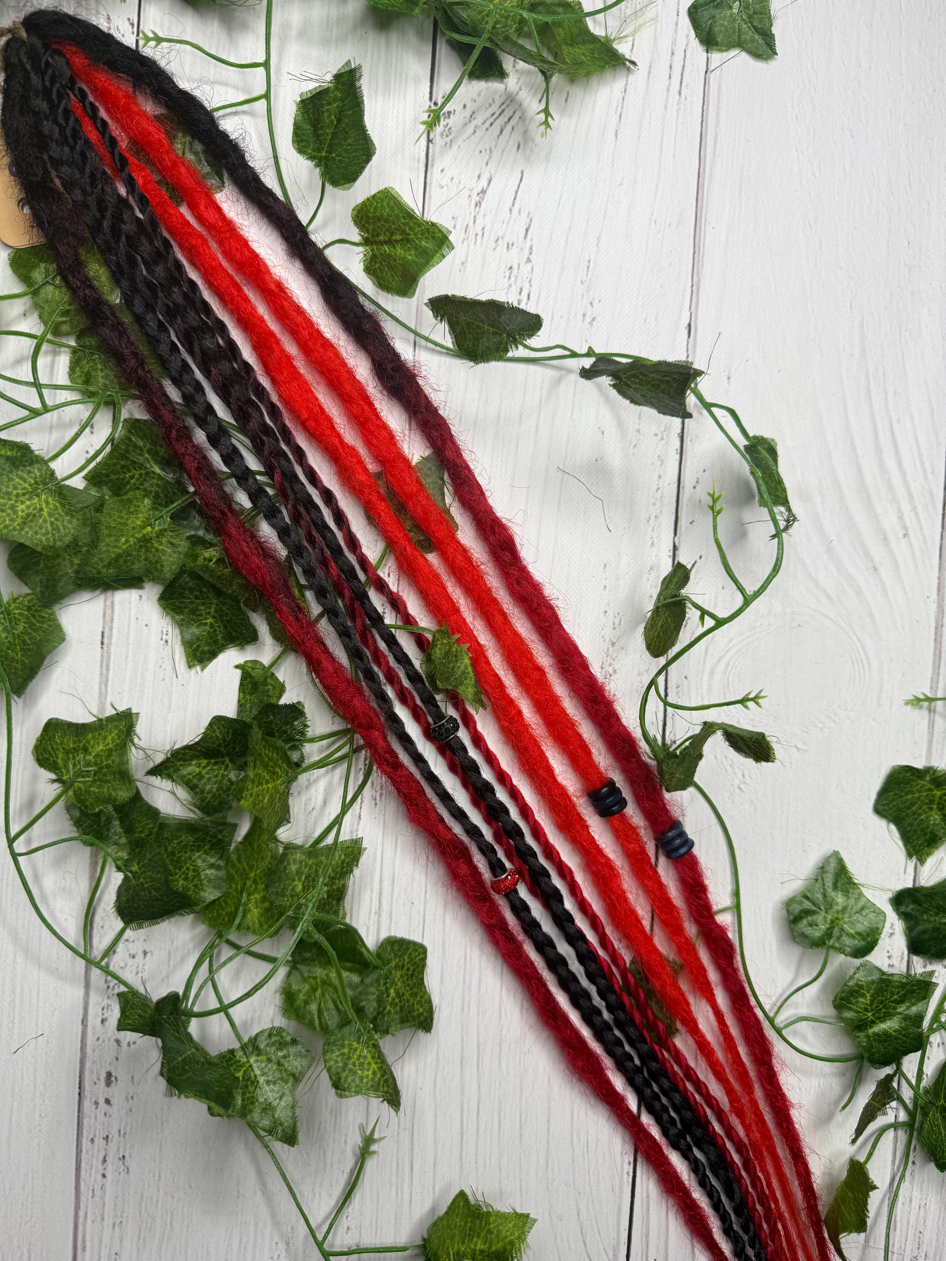 Set of 6, 53-65cm Red and Black Synthetic Extensions