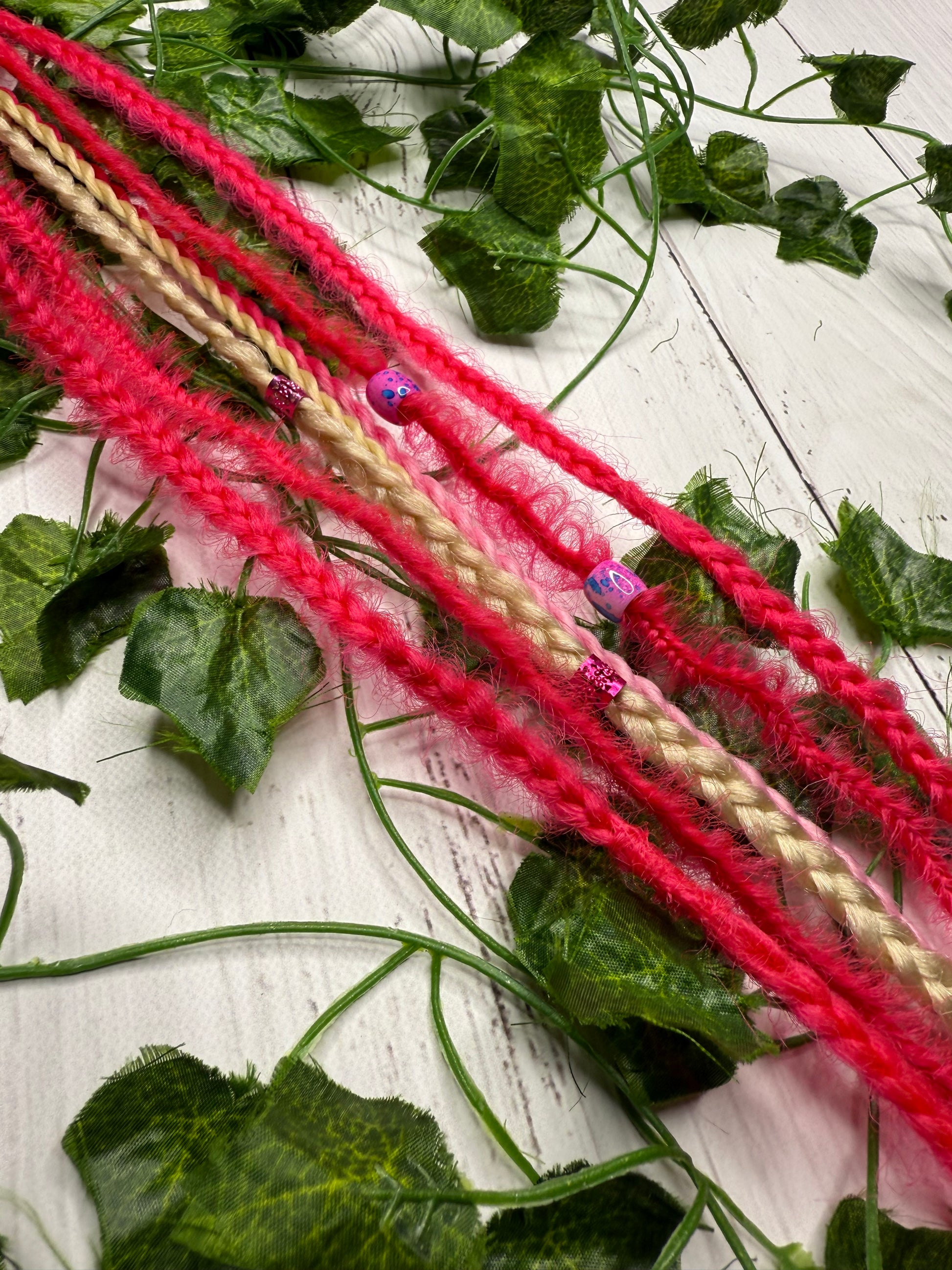 Decorations extensions can be added to dreadlocks or loose hair for added colour, length or volume. They're a fantastic way to satisfy the urge to dye or change your hair/dreadlocks. The decorations are not added permanently but you can wear them for as long as you choose. They're very easy to self-install and since they're reusable you can wear them time and time again whenever you like! Owning multiple colour combinations is the best way to satisfy that urge for change without changing your dreadlock set long-term.