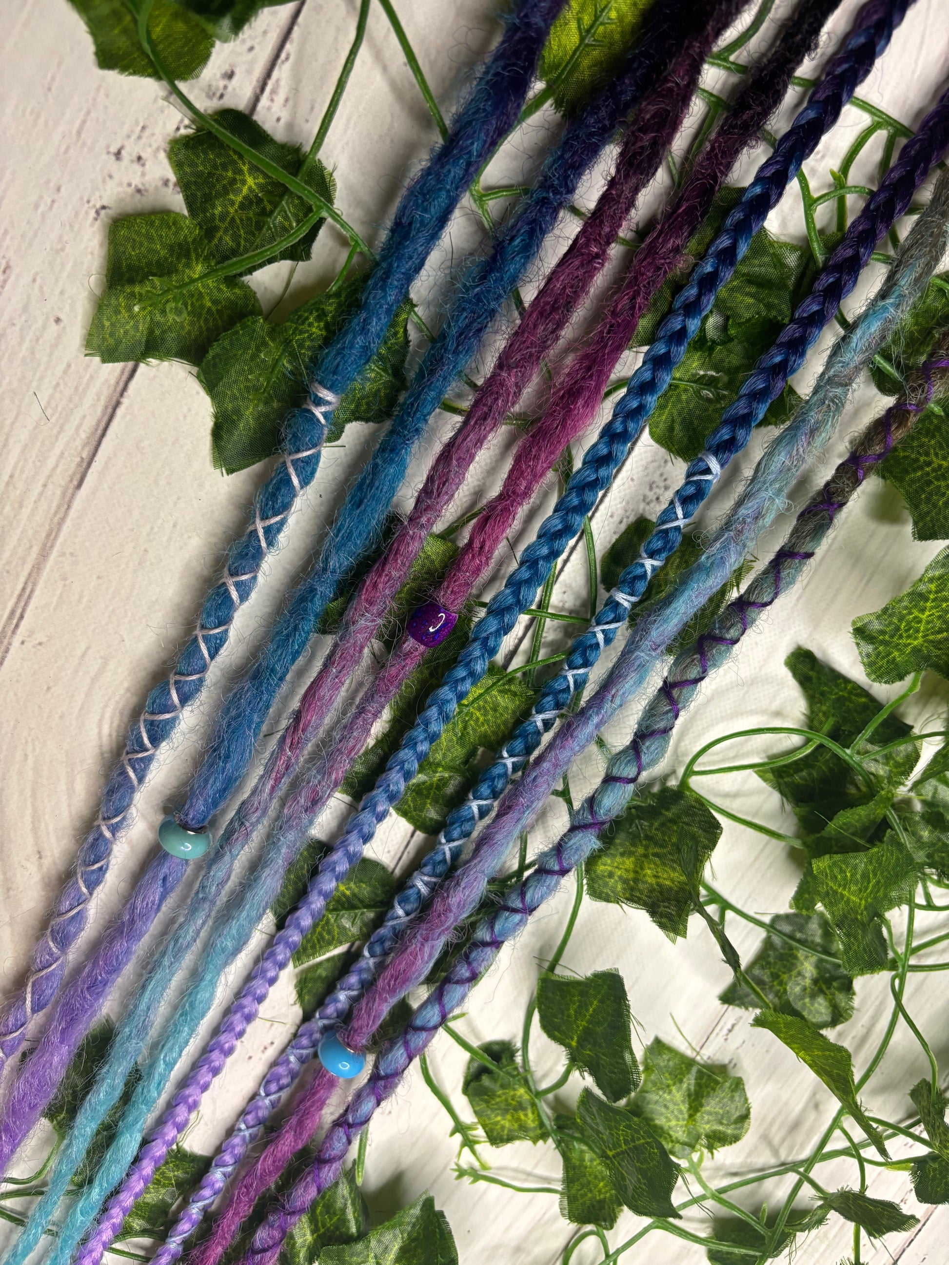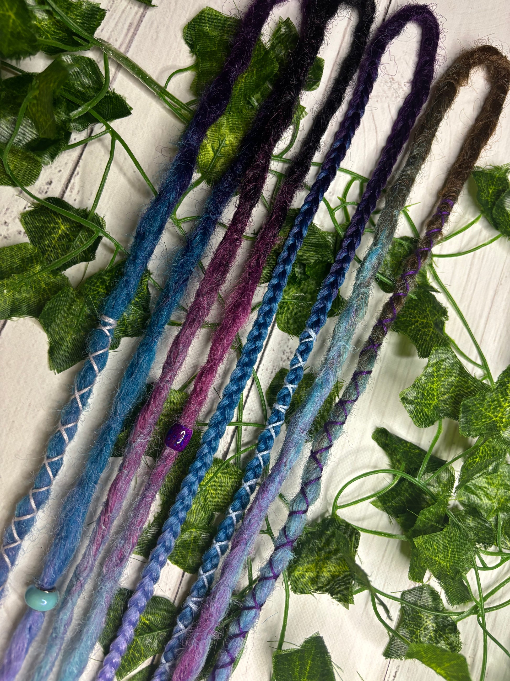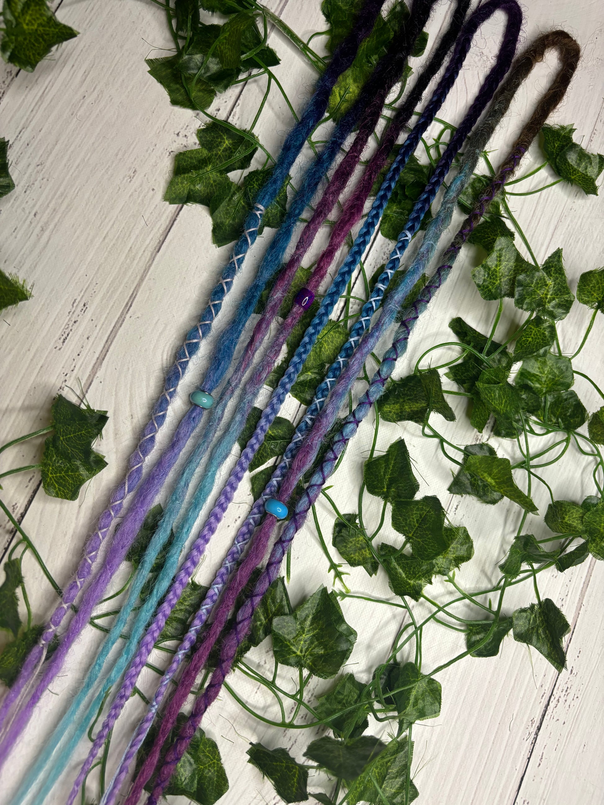 Decorations extensions can be added to dreadlocks or loose hair for added colour, length or volume. They're a fantastic way to satisfy the urge to dye or change your hair/dreadlocks. The decorations are not added permanently but you can wear them for as long as you choose. They're very easy to self-install and since they're reusable you can wear them time and time again whenever you like! Owning multiple colour combinations is the best way to satisfy that urge for change without changing your dreadlock set long-term.