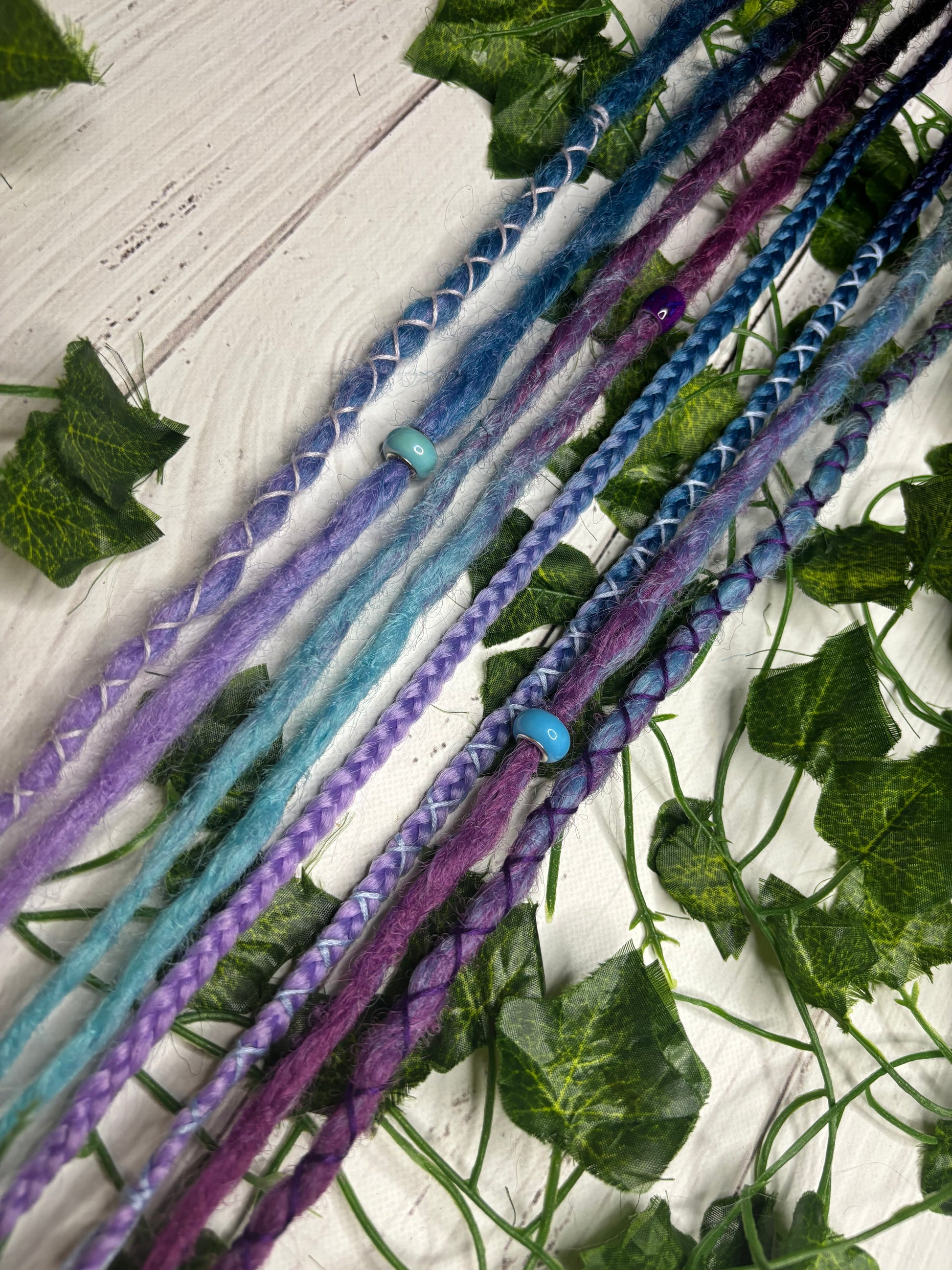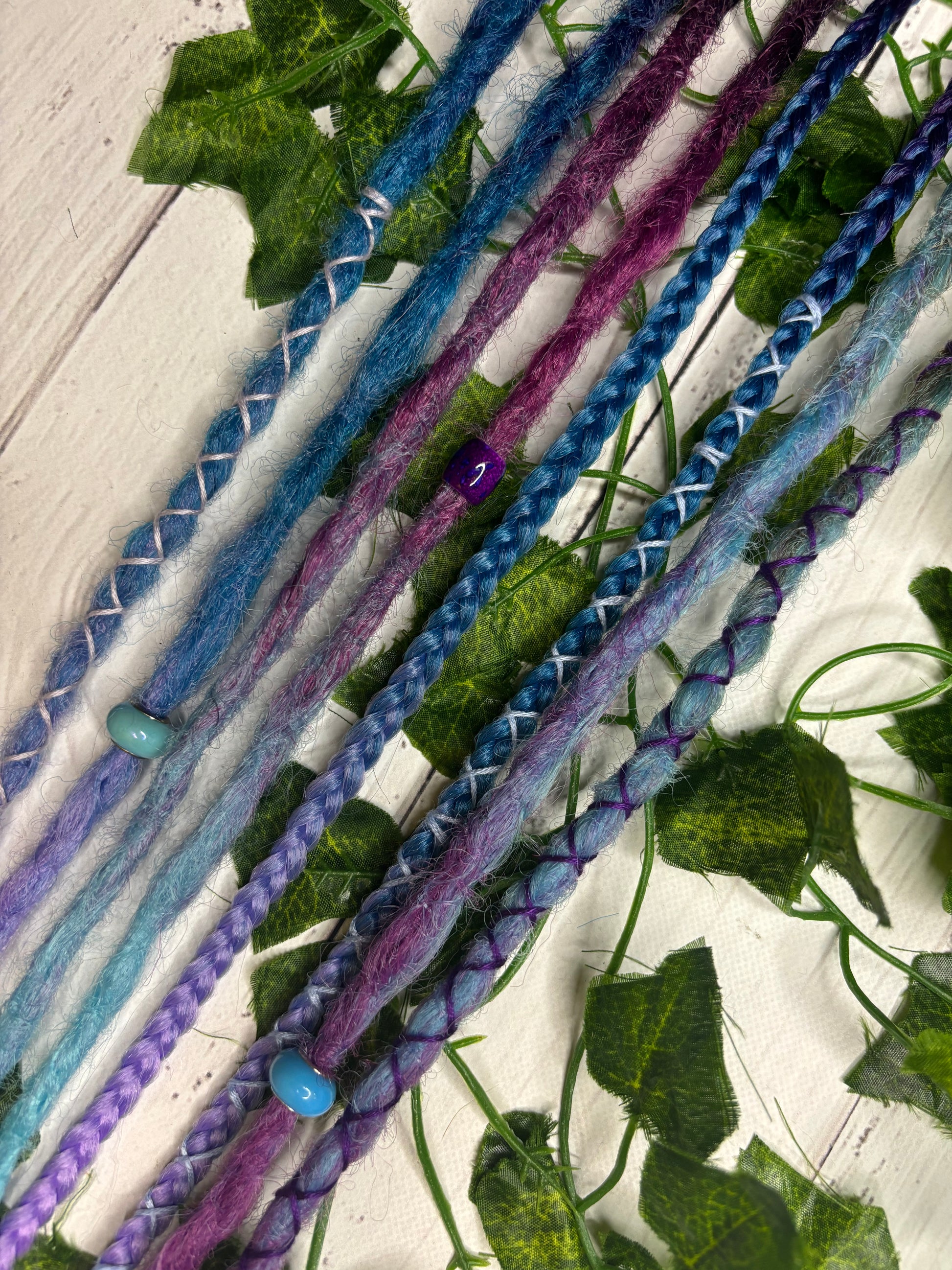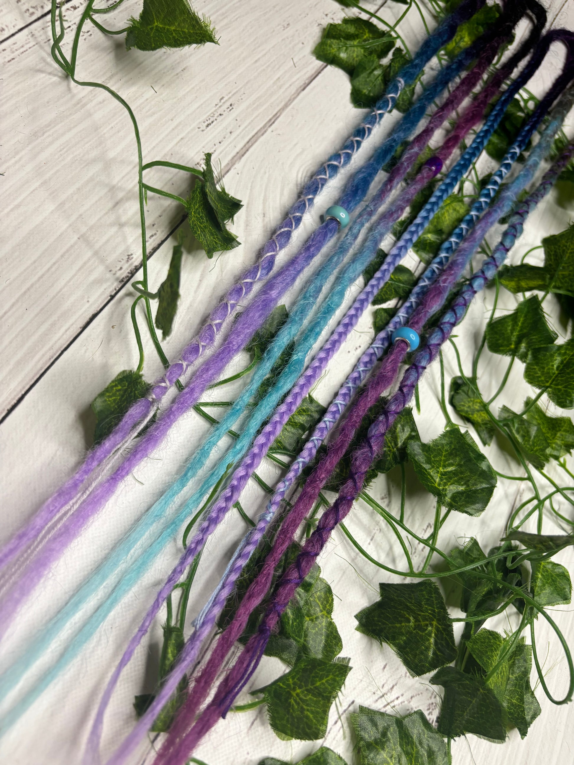 Decorations extensions can be added to dreadlocks or loose hair for added colour, length or volume. They're a fantastic way to satisfy the urge to dye or change your hair/dreadlocks. The decorations are not added permanently but you can wear them for as long as you choose. They're very easy to self-install and since they're reusable you can wear them time and time again whenever you like! Owning multiple colour combinations is the best way to satisfy that urge for change without changing your dreadlock set long-term.