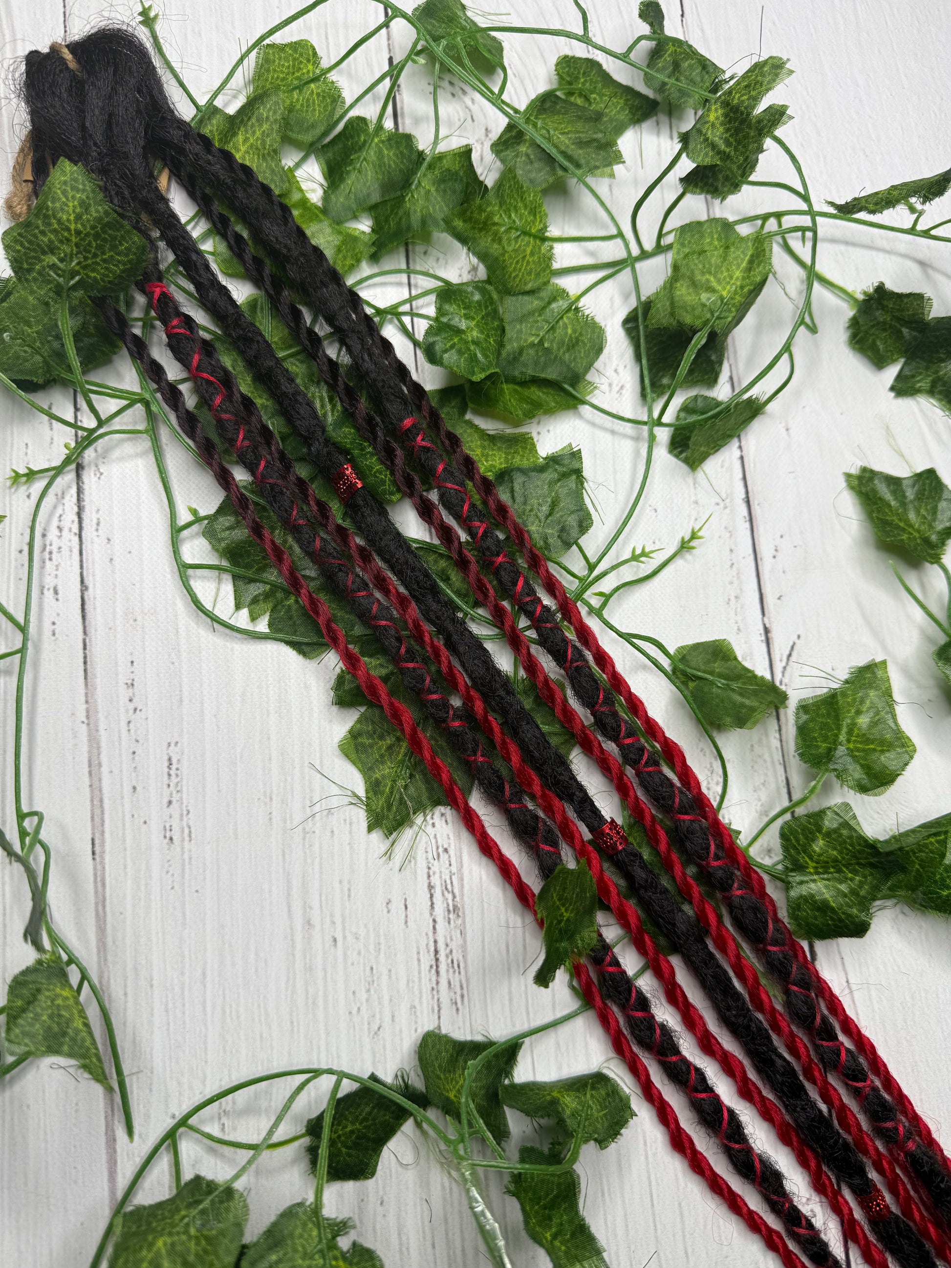 Set of 7, 59-62cm Red & Black Synthetic Extensions