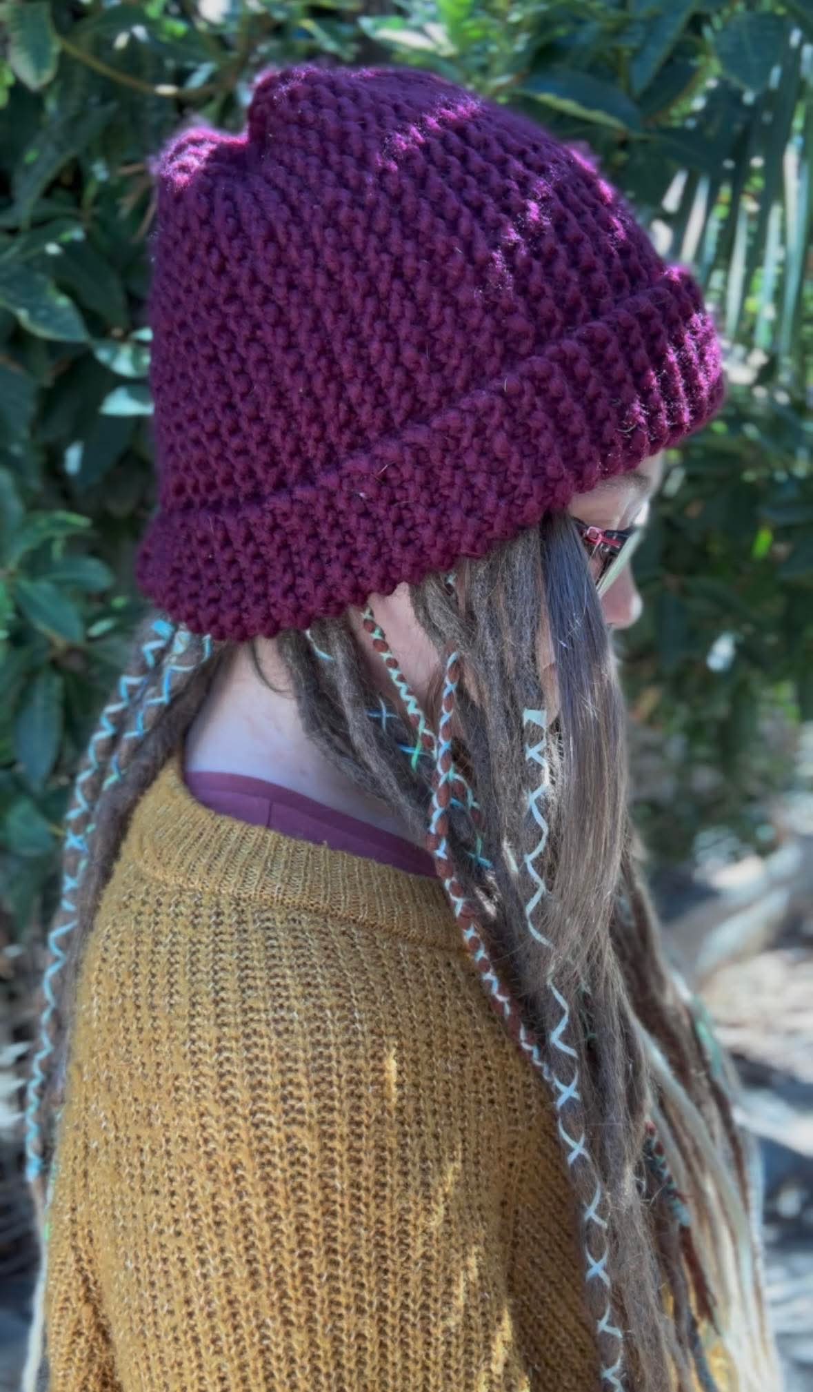 All beanies and headbands are handmade, one of a kind and made with care. They’re made large so that there is enough room for your locks!